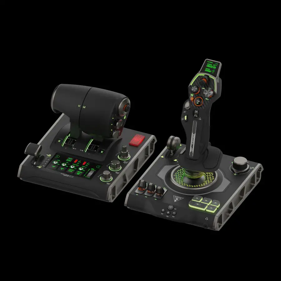 Expertly designed by the same team behind Turtle Beach’s best-in-class VelocityOne Flight, VelocityOne Rudder, and VelocityOne Flightstick, the all-new VelocityOne Flightdeck controls mirror those of today’s state-of-the-art fighter jets and advanced spacecraft. VelocityOne Flightdeck provides a peerless HOTAS experience with its comprehensive controls. Fifteen axes and 139 programmable functions allow pilots to customize the controls to their liking while keeping them immersed in the action during gameplay. The world’s first Flight Touch Display and an OLED Heads-Up Display deliver unprecedented levels of performance optimization and customization. Additionally, VelocityOne Flightdeck’s Flight Hangar app for Windows PC and iOS/Android devices provides even more in-depth customization, including control of RGB lighting zones and additional touchscreens for pilots to expand their setup.