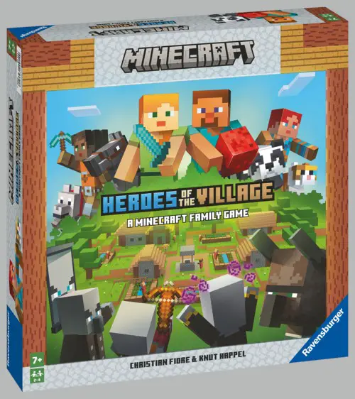 Younger gamers can now join Ravensburger’s Minecraft board game adventures with Minecraft: Heroes of the Village. In Minecraft: Heroes of the Village, players must protect their village from raiding Illagers. To aid in this endeavor, players need to band together to explore the world, collect resources, fight mobs intent on slowing them down, and build buildings to protect against the marauding Illagers. Players will also be assisted by their animal companions, who can grant special abilities to players.