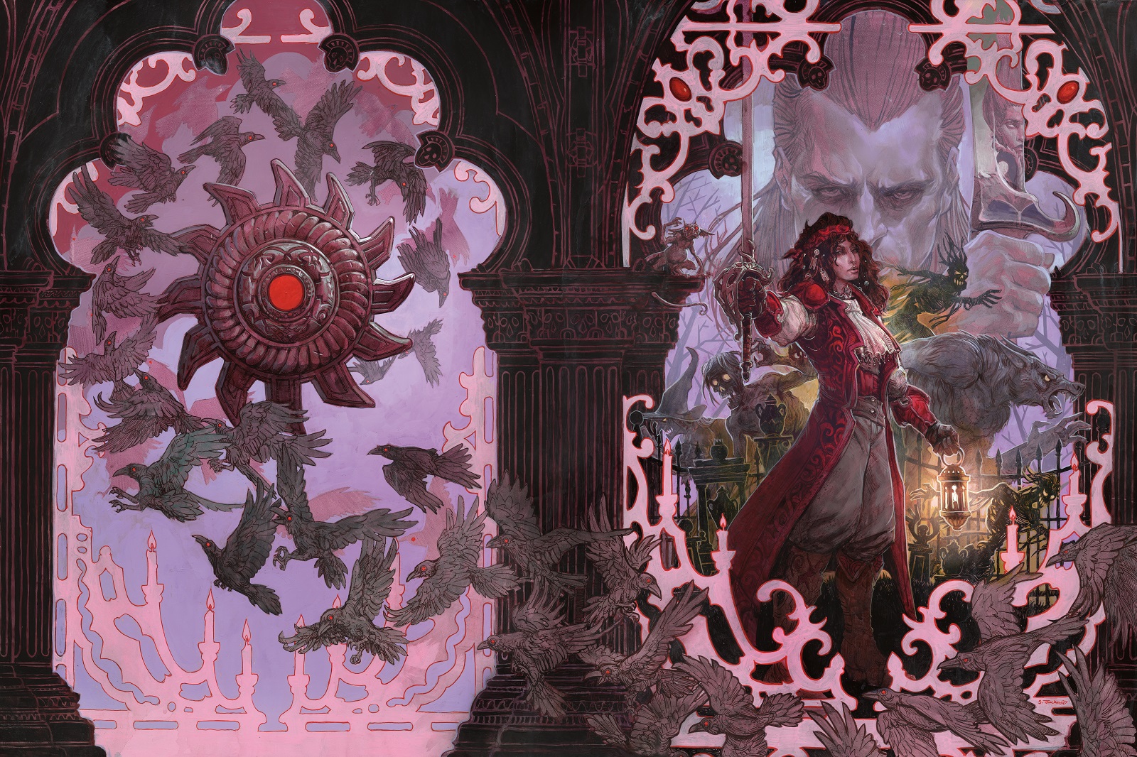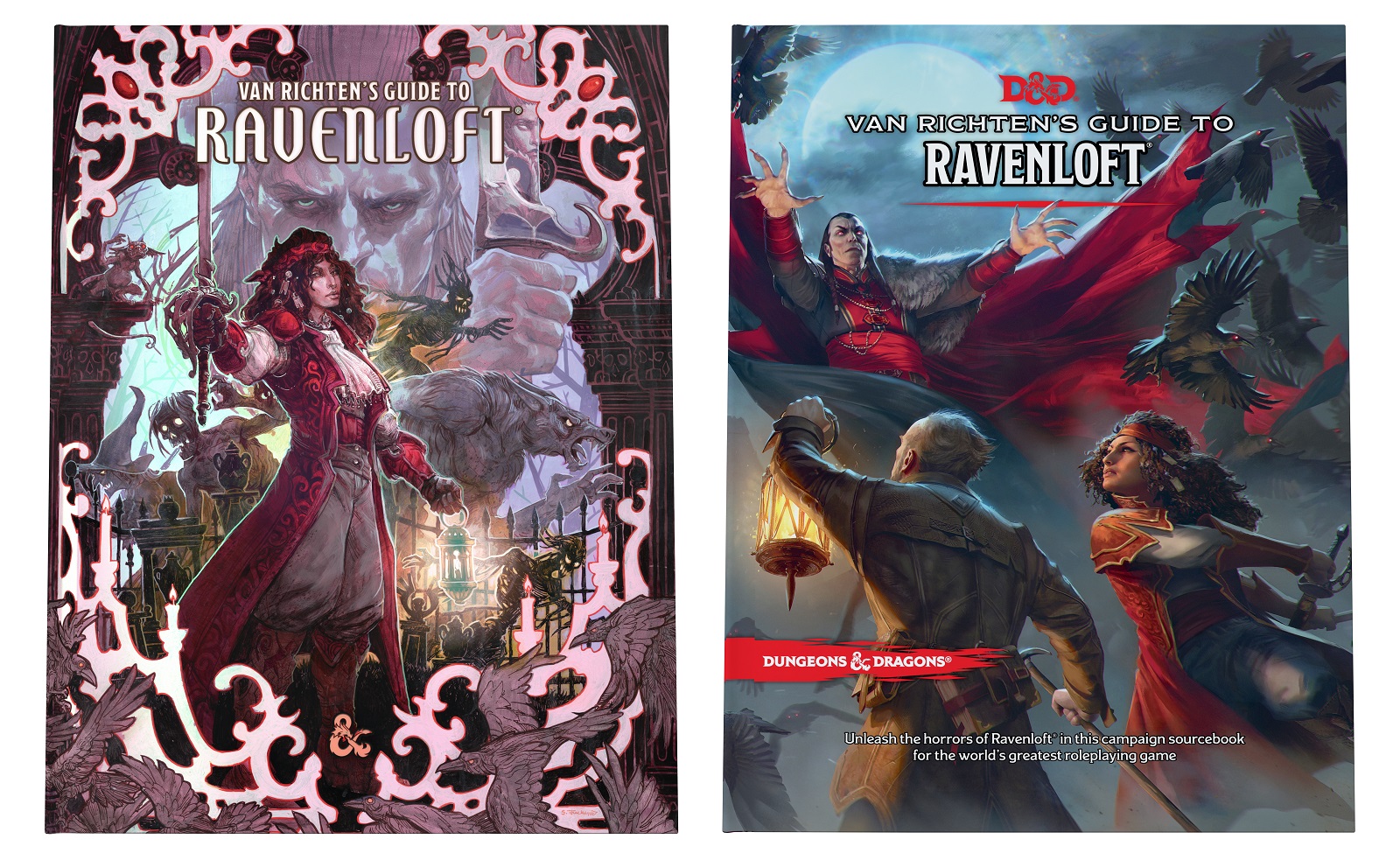 Look for the frightening appearance of Van Richten’s Guide to Ravenloft on the 18th May, with two covers, a standard cover by Anna Podedworna available everywhere and an alternate cover by Scott M. Fischer only available through game stores.