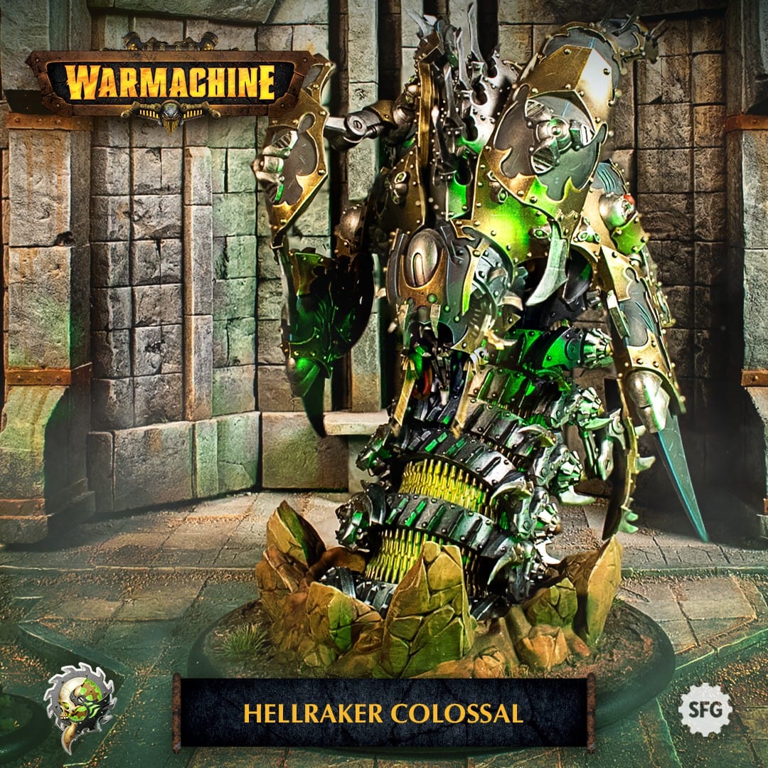 A new unit is being added to Warmachine on a massive 120mm base. The Cryx Helltaker Colossal is sure to make its presence known on the battlefield: