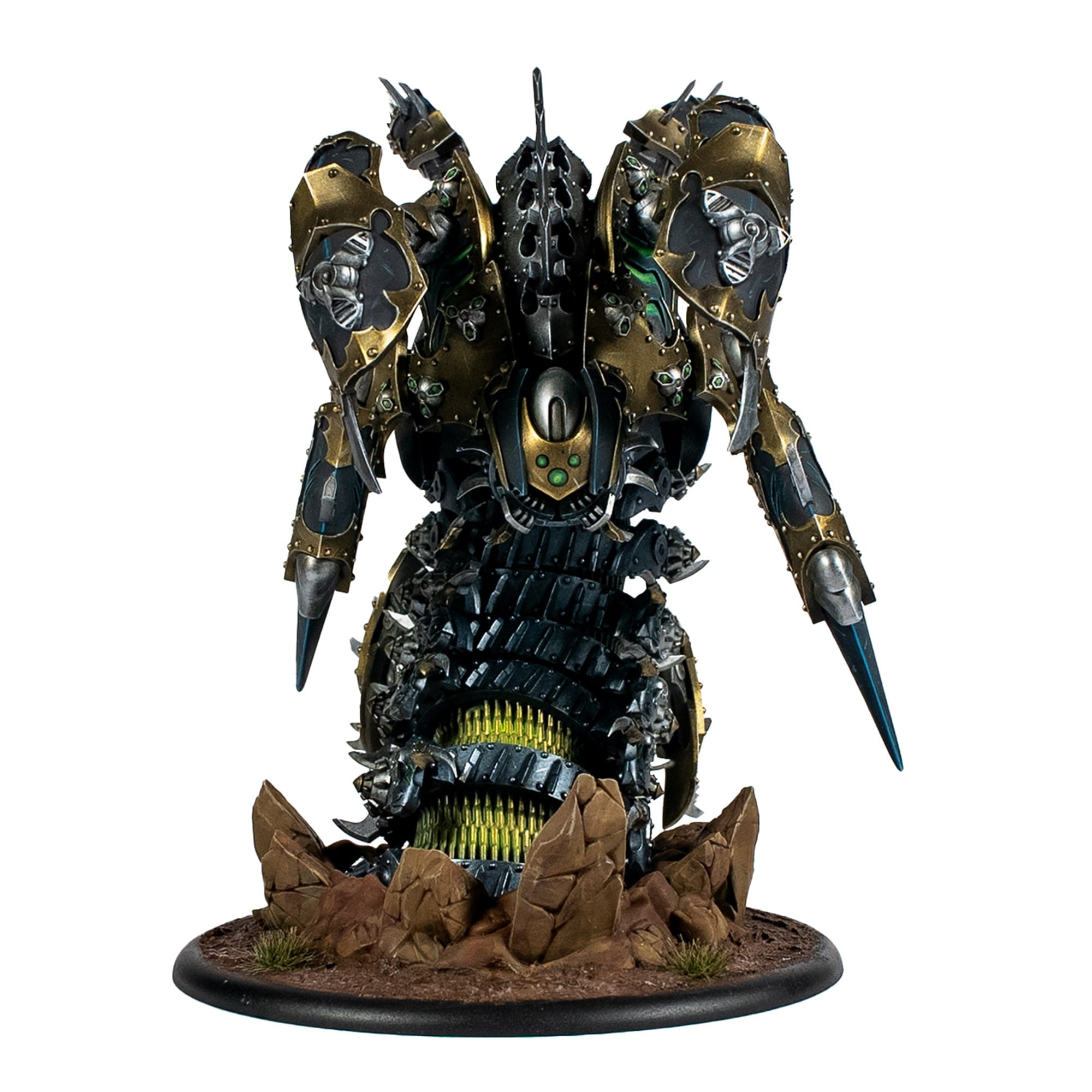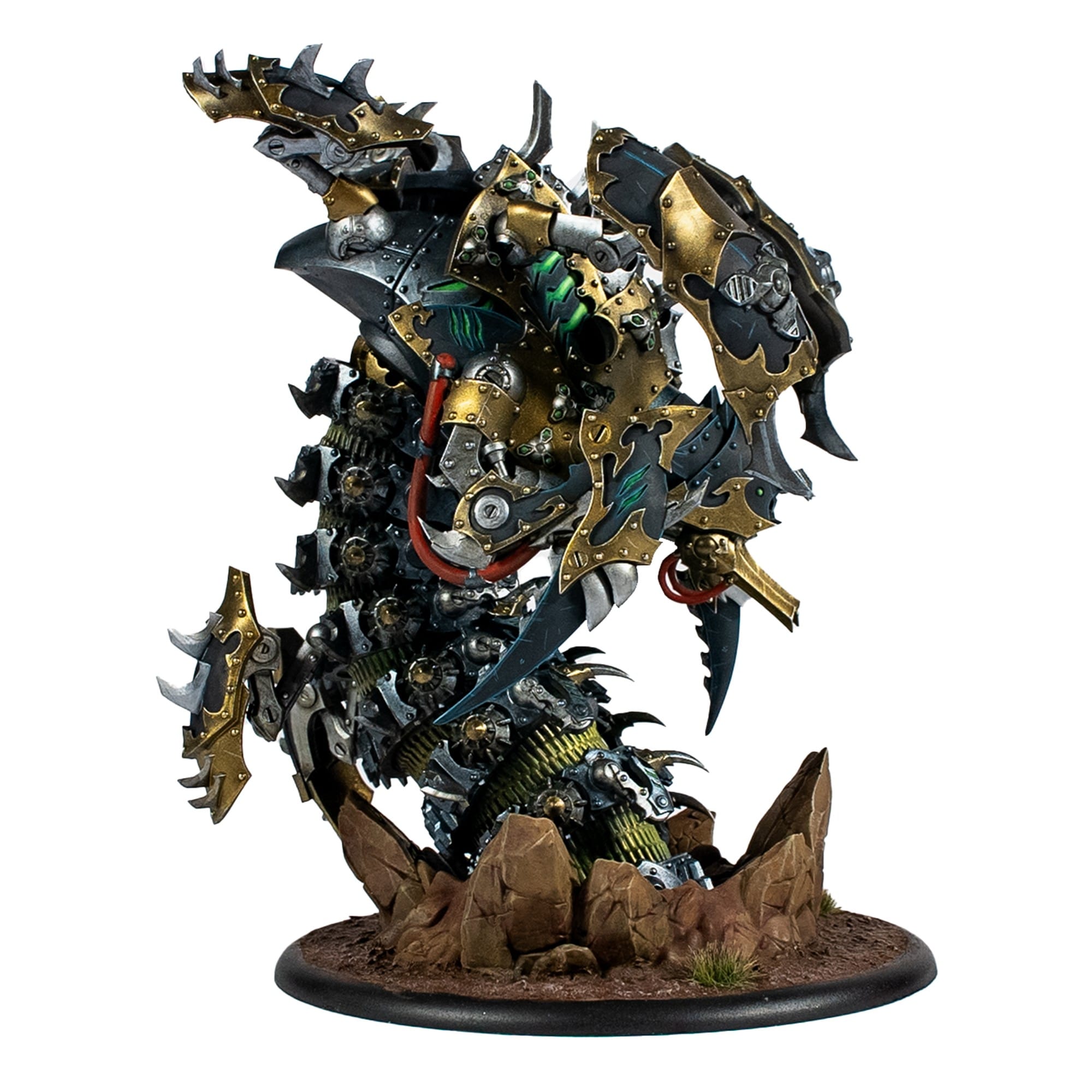 Forged in the nightmare empire’s necrofactoriums, the Hellraker is a warjack unlike any other. A titanic worm wrought from iron, bone, and necrotite, it tunnels unseen before erupting onto the battlefield in storms of ruin.