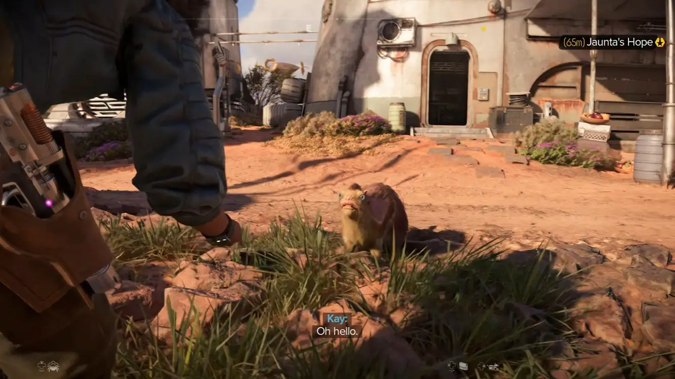 It was easy to see the smile the mention of Nix brought to the face of Marthe as she replied. She called him a main character, with him and Kay being a duo rather than him being just a companion. It was important to the team to create a creature that was believable, as the merqaal didn’t exist in Star Wars prior to Outlaws. They made sure he was a capable and strong animal; it would be feasible that Nix could actually do the things you’d be asking him to do via the story and your commands. His scales, claws, and sharp teeth, all were representative of his strength. Still, they wanted him to be relatable and be able to be close to Kay, with the soft fur on his belly. Nix is well-balanced, and he’s more than just a pet, even if the team was inspired by their own.