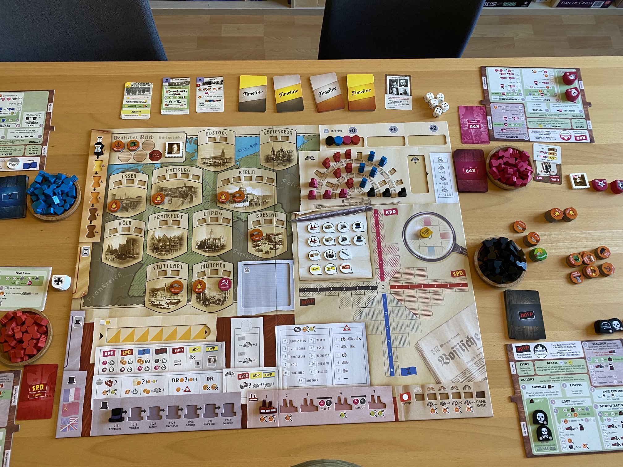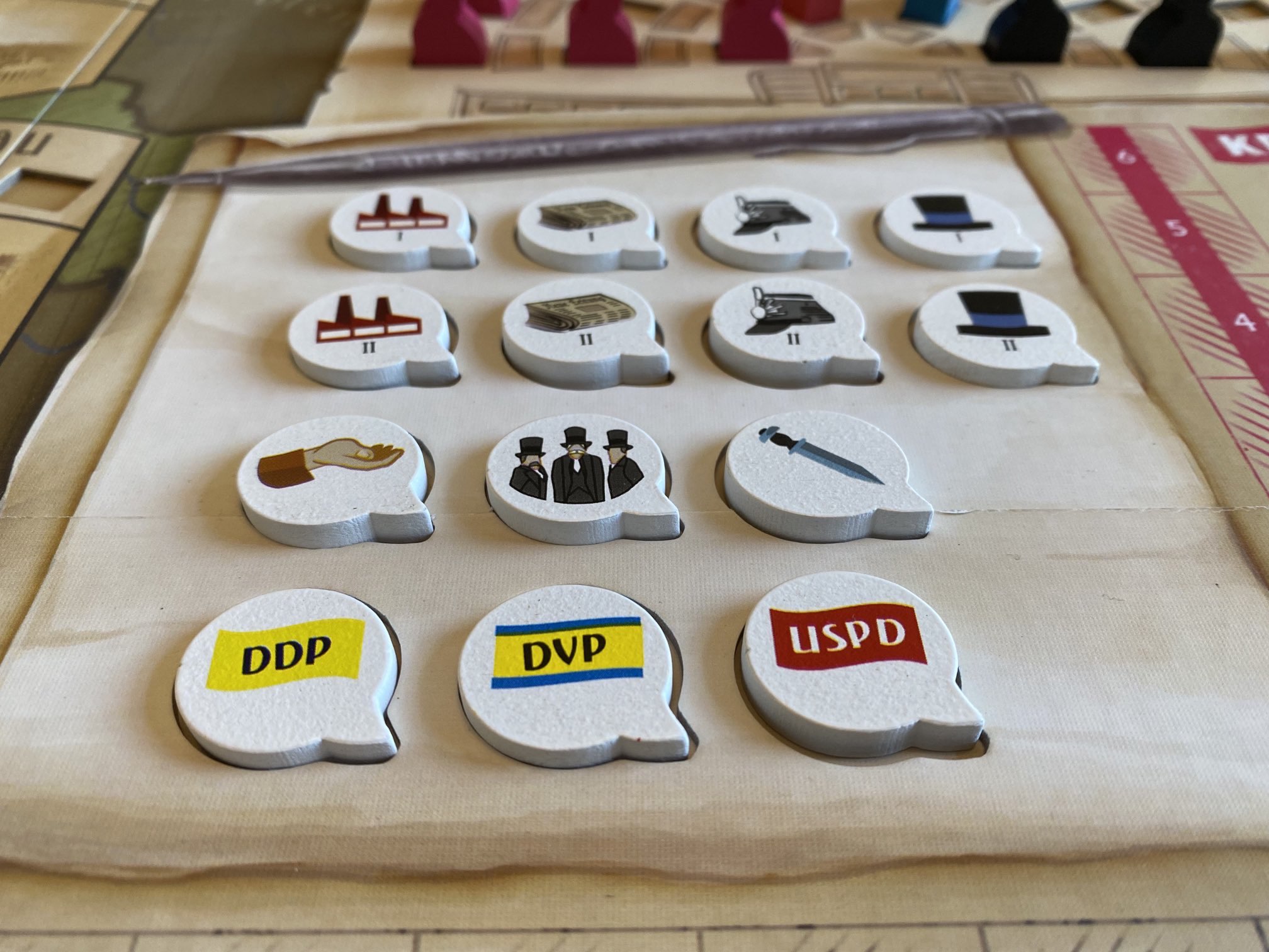 Weimar includes two major “battlefields”: In public opinion, the parties struggle to influence the important political issues like the economy, the media, or foreign affairs. Winning these issues scores points and allows them to take significant decisions. At the same time, the parties try to control the streets and position their followers in the major cities of Germany for demonstrations, street fights, and actions taken by the paramilitary organizations.
