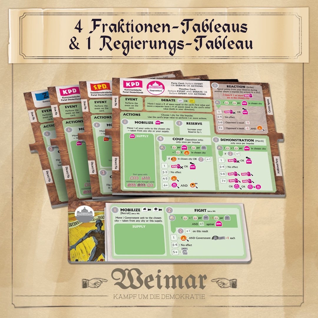 Weimar: The Fight for Democracy is a game about the major actors in the spectrum of the new Republic. The Social Democrats and the Conservatives are trying to defend the democracy. Communists and Nationalists are looking to overthrow the government and install their own regime. Will this infant Republic survive? Or will Germany — as in history — fall to the Nazis and become a lawless state? Or will there be a Union of Socialist German Republics?
