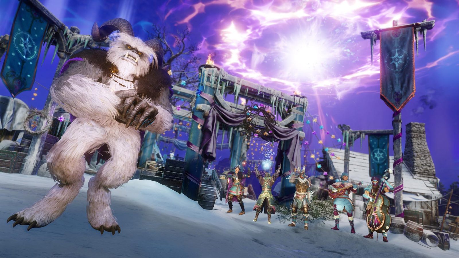 Rally a party of up to 20 other players to defeat the mighty Winter Warrior, a challenging boss who roams the snowy landscape to receive event-exclusive rewards.