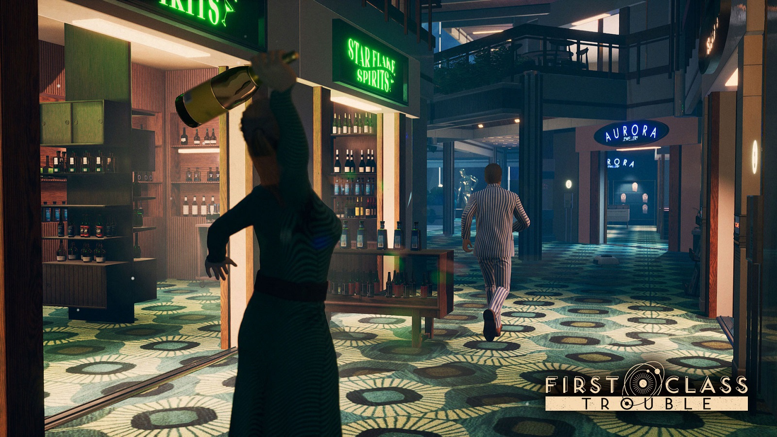 In First Class Trouble you take on the role of one of the last remaining survivors on a luxury spaceship that has experienced some severe technical difficulties. Chief of these problems is that the AI and on-board robotic servants have rebelled and decided to kill every human onboard. They wiped out most of the passengers by simply turning the air off, but a lucky few with Oxygen Rebreathers survived.
