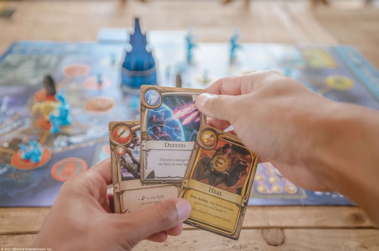 Hero Cards that give players an edge against their enemies in the form of equipment for more attack power during combat, special mounts that allow players to move more spaces on their turn, healing potions to restore hit points, and much more.