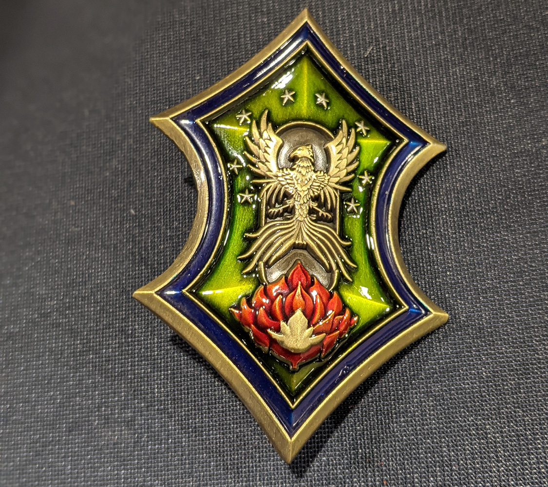 The Council of Tal’Dorei badge is as regal and impressive as the body it represents. The various gradients and textures catch the light and look incredibly captivating behind the solid bronze colored phoenix and stars. This is easily the most eye-catching of the trinkets that were on display.