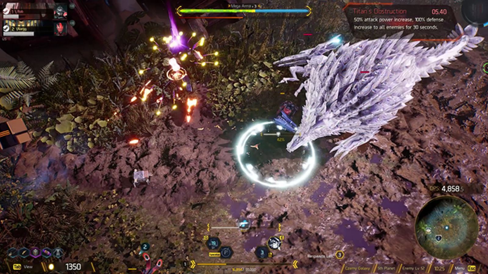 Between multiple levels of fighting hordes of enemies, the game throws in a couple of boss fights to spice things up. Bosses present a significant challenge and fighting them solo can certainly be demanding. And if you don’t like the word demanding, bullet sponge might be more appropriate. Dying against bosses isn’t unheard of and will likely happen to at least one player. This is where the rogue-like elements come in.. Each time you go to a galaxy, you have a total revive count of three. So if you die, you can be revived by your teammates, however this can only happen for the entire team three times. This can present increased difficulty as you go through boss fights.