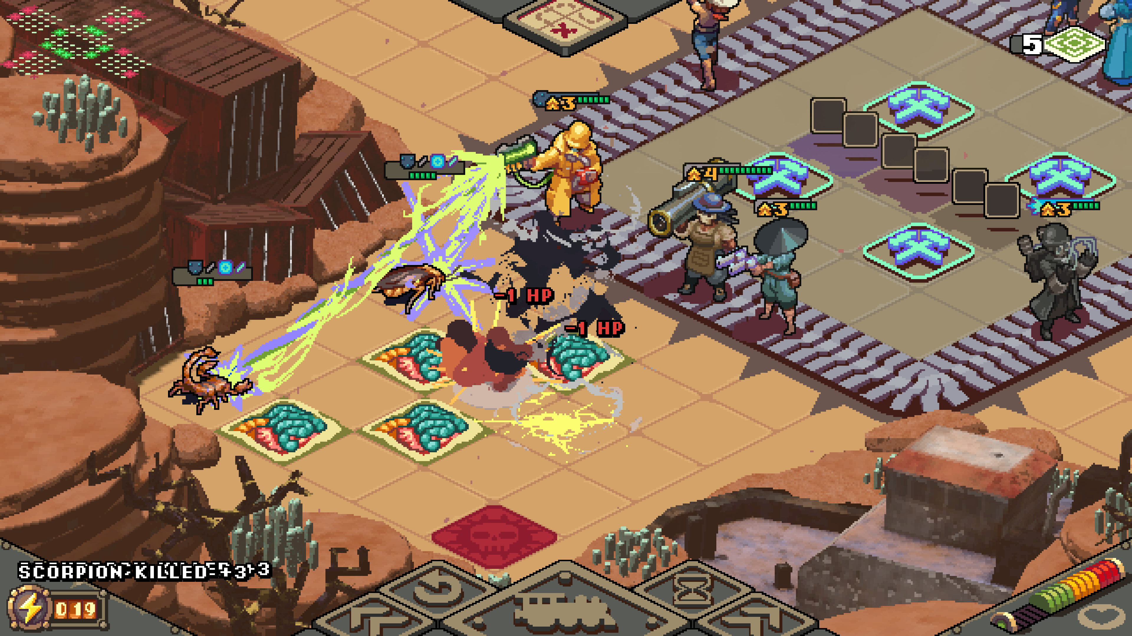 Australia Did It gives you control of mercenaries with a variety of abilities. Each unit starts basic. They get a gun. But after leveling them up, two units can merge, creating a more powerful unit. For example, a nomad and gunslinger combine to make a rocketeer. As you level up these fused units (if they survive), you can keep merging them, creating more powerful and absurd combinations.