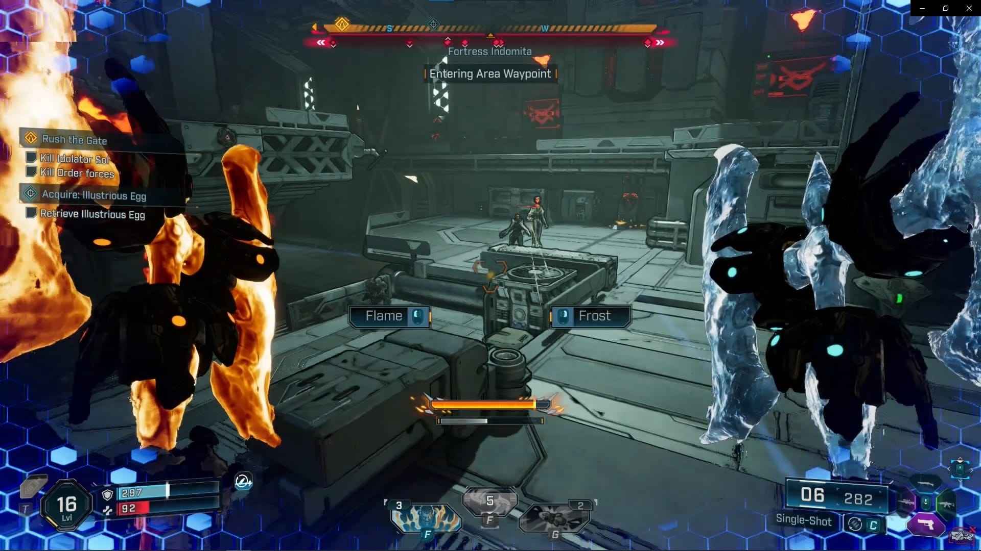After reaching Fortress Indomita and fighting my way inside, I took a breath. There were a couple of tantalizing vending machines, and I wanted to check deals on shields and guns before I…forge…ahead, though I guess buying something from Sol’s own vending machines wasn’t meant to be much help.