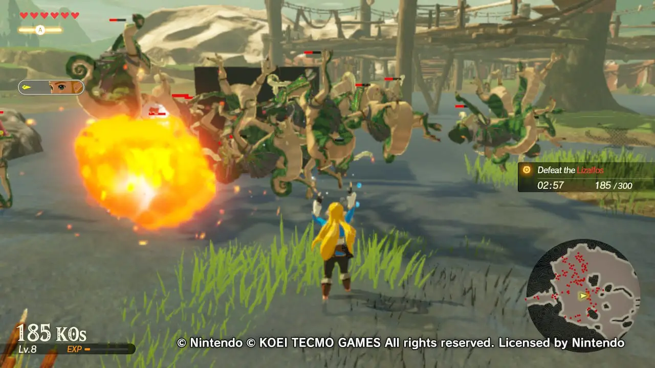 The biggest deviation from the Warriors formula is the addition of the Sheikah Slate. Just like in Breath of the Wild, you can use Stasis, Cryonis, Magnesis, and Bombs to attack and solve puzzles (mostly the former in this case). Each character has different variations of these spells, and Zelda even uses it as her main weapon. While it’s almost entirely used to interrupt a powerful enemy and expose their weak point, it’s a fun way to mix up the moment to moment gameplay.