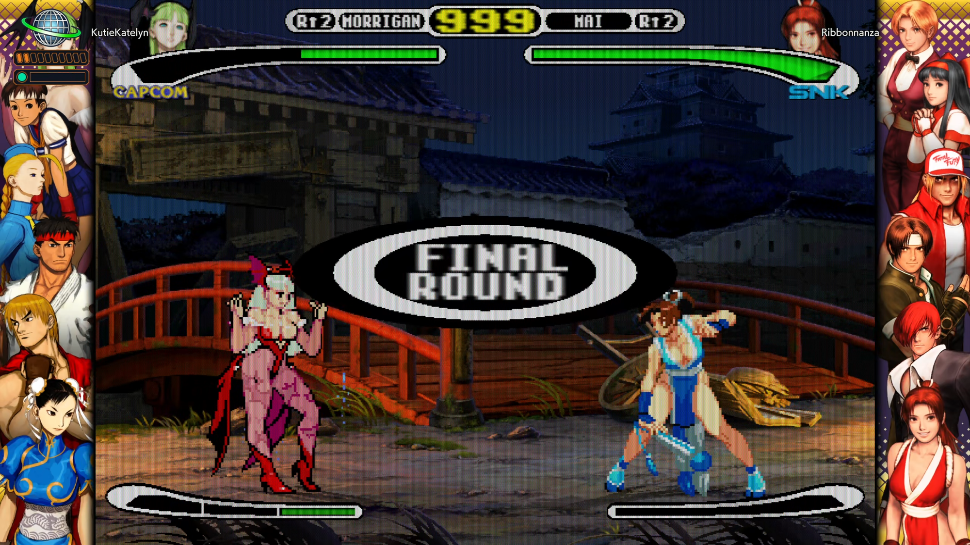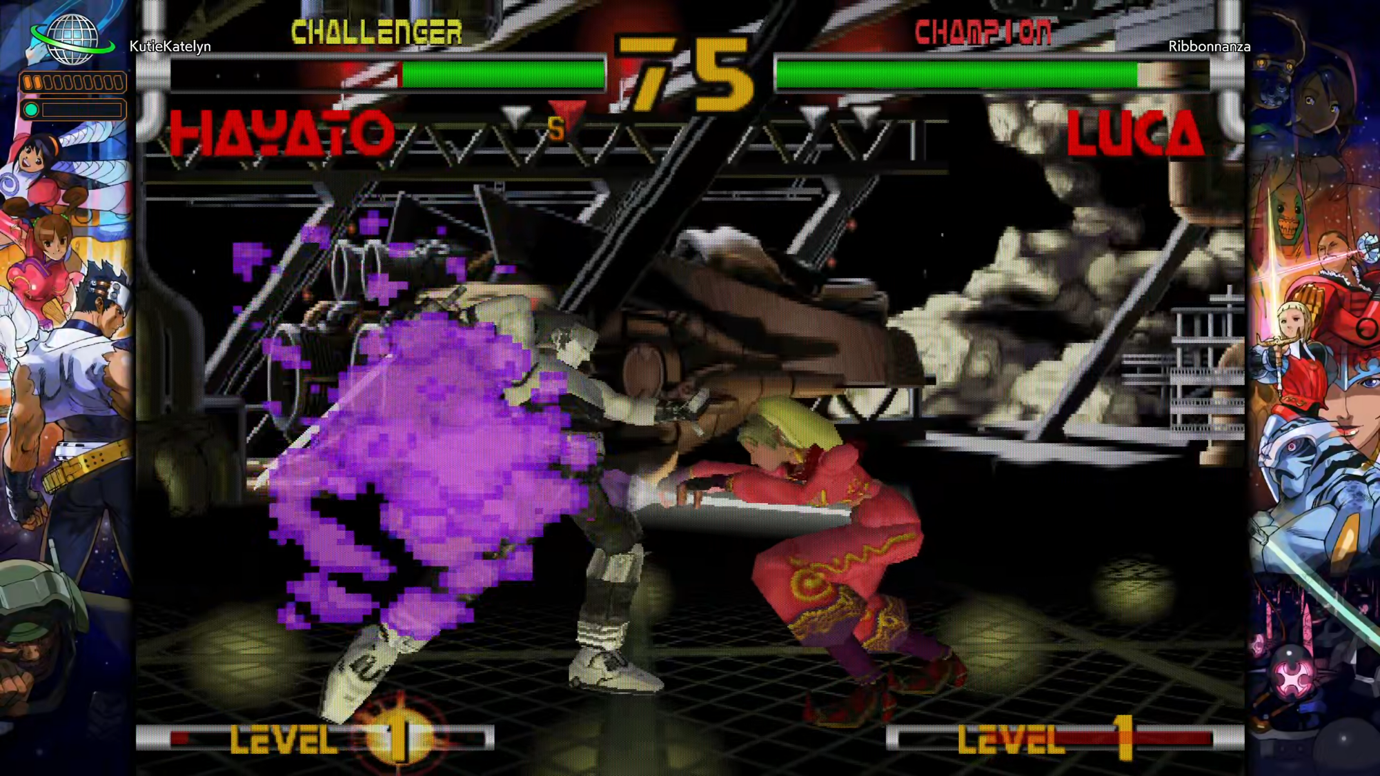 Finally, we played Plasma Sword: Nightmare of Bilstein, a game neither of us had heard of but it quickly became the star of the night. It’s something of a middle ground between Capcom Vs. SNK and Power Stone 2, having traditional fighting game controls while being weird, unorthodox, and a ton of fun. The game has a massive roster of sci-fi characters, each with their own weapons from knock-off lightsabers to futuristic yo-yos. It’s fully 3D too, similar to Tekken, where fighters can move in circles around their opponent with the press of a button.
