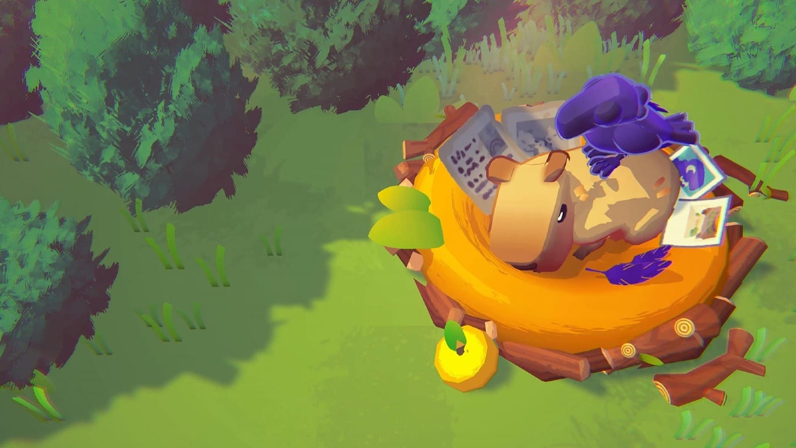 The map we find ourselves in is a neighborhood with feathered residents and several points of interest. My favorites of these were the swing set where you’ll stop to talk to Corvi about the event of the flood and your lost families. Despite Capy being mute, it felt quite somber and made me slightly worried that this game was going to get pretty sad! But who am I kidding, as soon as you gave me a baby capybara to worry about, I think I would shed a tear at anything. From this scene, I now know Capy Castaway will have a heartfelt story to explore and get invested in which is always exciting.
