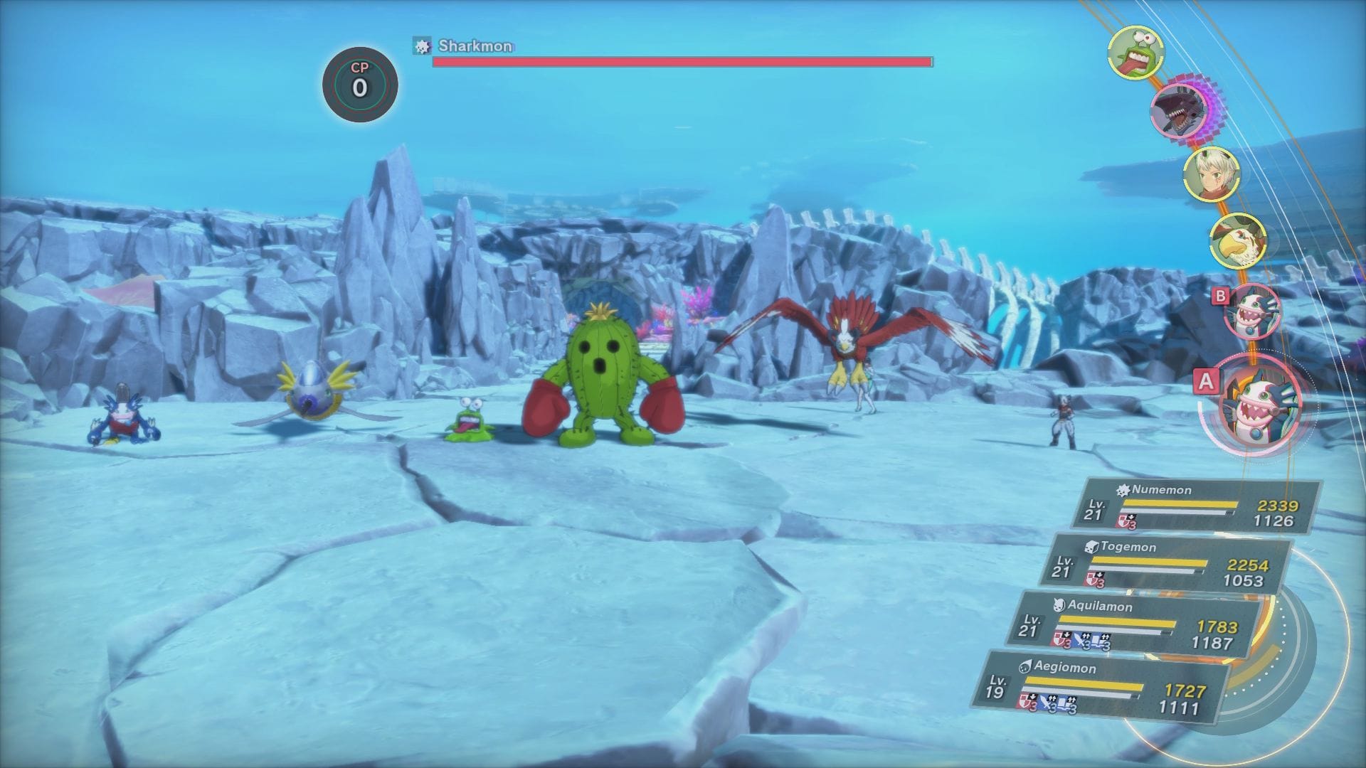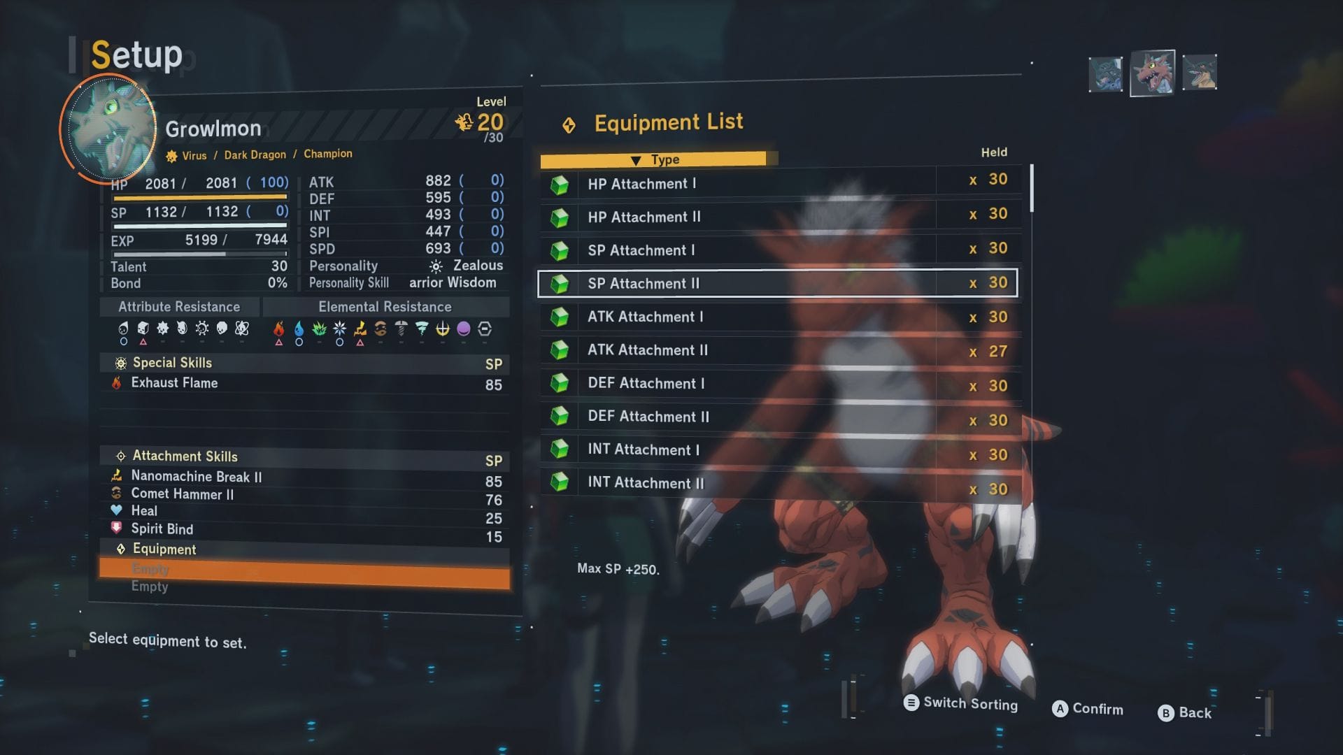 So yes, that meant the adorable little slime freak Numemon was able to stand strong against the giant mechanical Sharkmon boss fight, even when the green booger’s signature move is yeeting a pile of pink poop with that goofy smile. This is on top of the typical equipment slots each Digimon possesses to boost their stats.