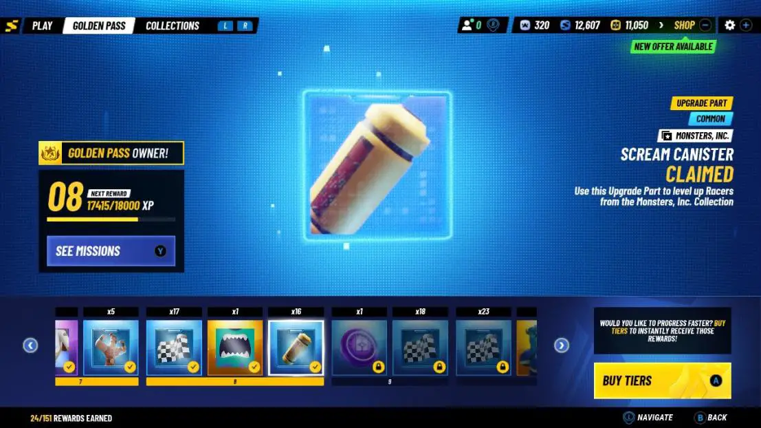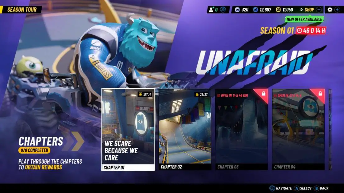 While those, seemingly, will be the most played modes, we also have a Season Tour mode which is a sort of campaign themed around the “Golden Pass” for that time period (essentially their version of the Battle Pass). The Golden Pass includes everything from racer shards (how you unlock characters), to new racing costumes, icons, season coins, and more. Seems like it’ll be a decent deal for those who want new characters from that movie (the first being Monsters Inc). While I’m not a fan of the Battle Pass system for games, I understand that it’s a normal model for games today.