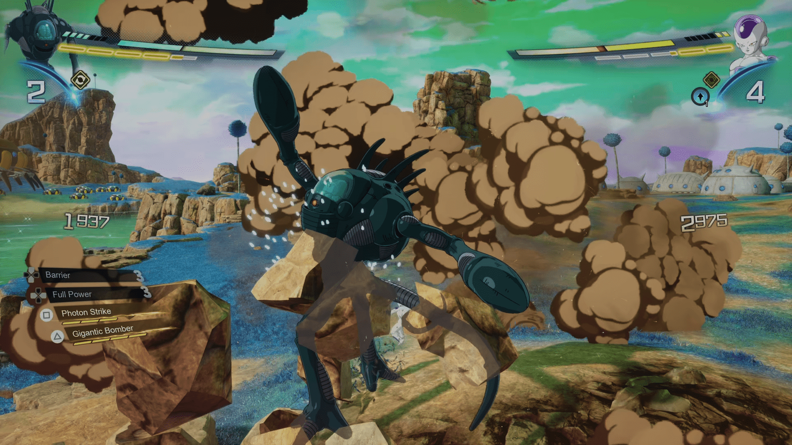 Although I wrote a seemingly endless amount of little notes about each character I tried, I’ll stick to some highlights: Babidi seems weak, and in the grand scheme of things he probably is, but he has some unconventionally powerful attacks like an explosion you don’t even seem to need to aim. Cooler’s transformation into his final form looks as awesome as you’d hope. Dr. Wheelo breaks the game’s normal rules by being both a giant character and unable to charge up his energy on command (his energy fills automatically instead). The generic Freeza Soldier fights with a vast arsenal of equally generic attacks, and, well, he does his best. He didn’t last long against Metal Cooler although that might be my fault.