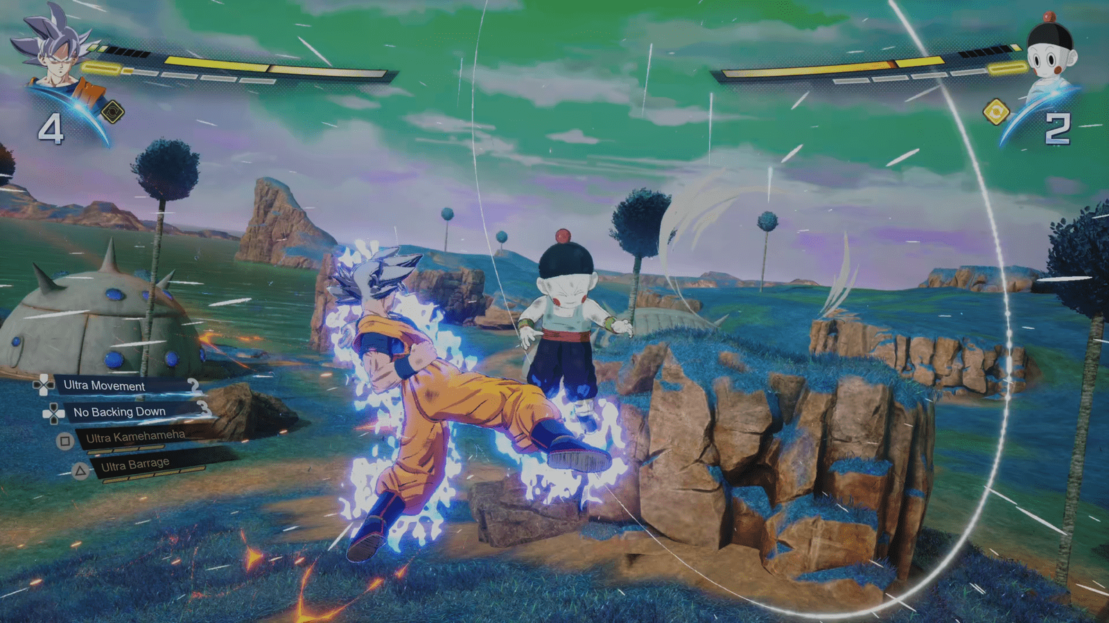 I spent a long time just scrolling through the giant roster to see everyone on offer. Did you know Goku is in this game? He’s in it a lot, actually – I saw every version I could think of. My personal highlight? Kid Goku from early Dragon Ball. He was one of the first characters I picked, and he didn’t disappoint. From his tiny build, to his staff, to his cloud, Kid Goku feels noticeably distinct from both his other selves and just about everyone else. As much as I appreciate everything that comes after the original era of this series, I enjoy nods to a time when things weren’t quite as standardized as they tend to be now.