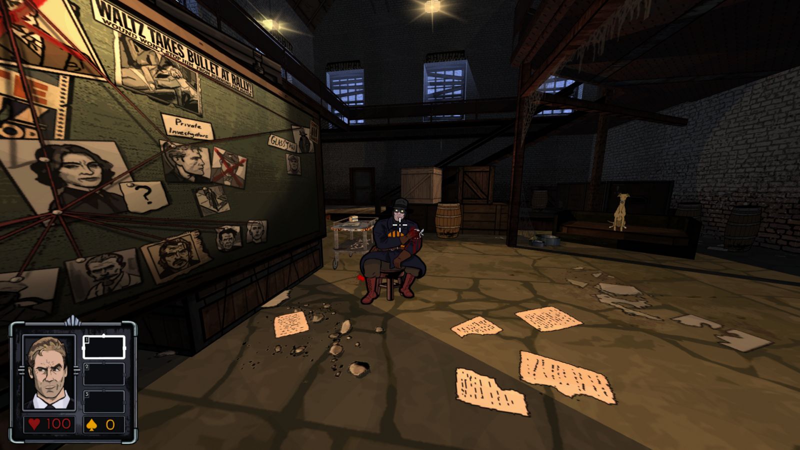 Let’s set the scene. It’s the 1930s, and Switchblade City is riddled with crime as its superhero guardians, the Aces, are disappearing one by one. You play as Michael Thane, an investigator who’s woken up by the ringing of a phone. Judging by the bottles next to the bed and the not so graceful fall to your face, the ringing headache of a hangover is present as well. We answer the phone to learn that our protagonist is in mortal danger, and we have to escape our apartment and take action… or avoid it. You see, one of the best parts of Fallen Aces is its open level design and abundance of player choice. An immersive sim to its core.