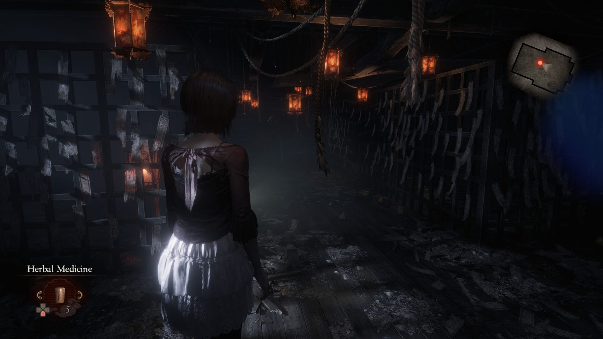 The most conspicuous change in the remake is, of course, the camera. No, not the one that can be wielded against spirits (although there are changes, more on that later), but rather the player-perspective camera. The original game used fixed camera angles for each scene, utilizing the tank controls that fans of horror games from the PS2-era are all too familiar with. The remake has opted for a modern control scheme and UI (minimap included), and the player camera is now in an over-the-shoulder perspective. While I do think that the fixed angles of the original created some suspenseful and terrifying moments, the updated controls and graphical upgrades both feel great to interact with.