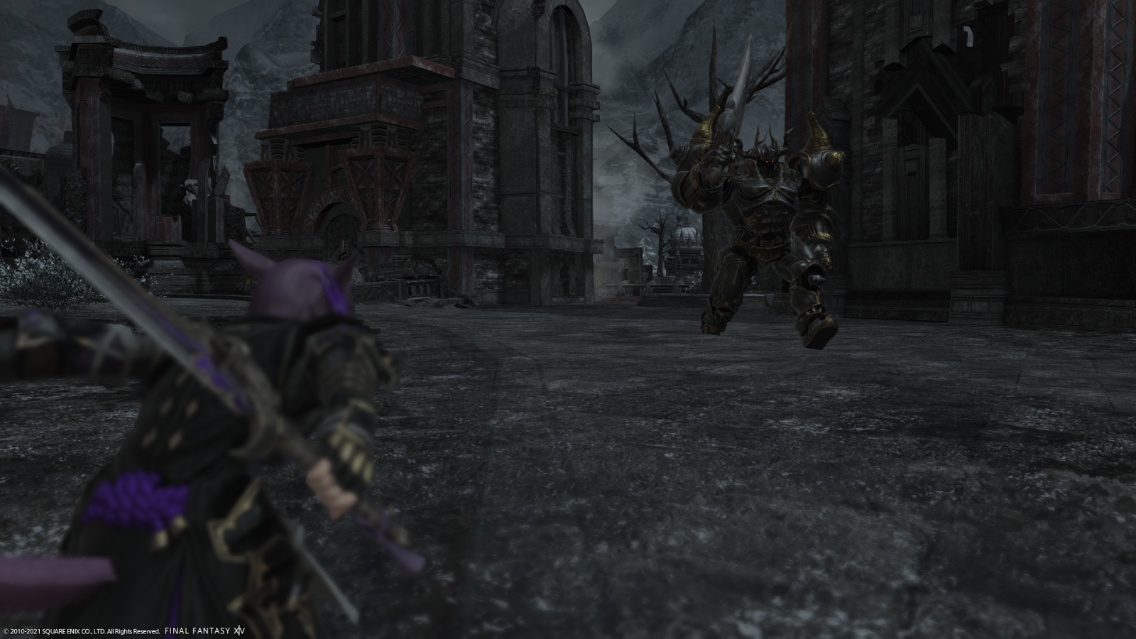 The Media Tour had two other locations we could visit, one open world area in Thavnair and another in Garlemald. Thavnair is mostly a grassland with some rocky outcroppings, seemingly inspired by an African savanna. It’s very colorful, which stands in stark contrast to Garlemald which is almost entirely gray. It was already a snowy location before we got there, but any city or town-like location has been completely decimated and blackened with ash, with monsters roaming where people would have been. There are military camps and a train station, but the area feels very lifeless and somewhat reminiscent of Final Fantasy VI.