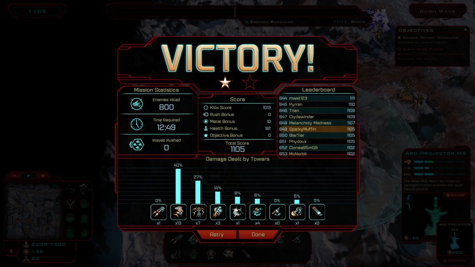 One of the last enemy types introduced with the current set of missions are flying enemies. These ignore the paths completely and can fly to the base immediately. However, they still have to search for it, and hitting ALT will show you their projected flight path, letting you use weapons that target flying enemies in their path like you would normal enemies. Compared to the Eradicator, these bogeys weren’t nearly as difficult to figure out, but I’m sure that’ll change further along.