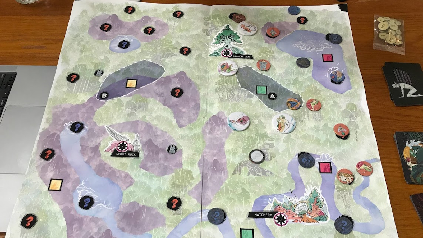 The movement on the game board is free form and uses discs to determine how far a character can move. Characters will go around completing quests to help the local inhabitants, delivering goods, putting out fires, defeating enemies, and more. The game has legacy elements, such as unlocking more stories and maps as you play, but nothing that prevents the game from being reset.