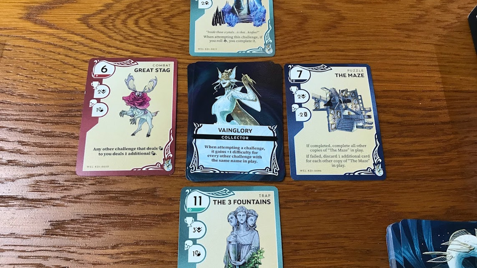 Kinfire Delve is designed to be a difficult game that most new players will lose in their first few attempts. As you learn how to play and understand how to use your characters more effectively, you’ll be able to get further, reach the boss, and finally defeat them. With the way the delve deck works, you’ll only see a fraction of the cards each time you play, which ensures that each playthrough is different. It is one of my most highly anticipated games now and I look forward to its release!