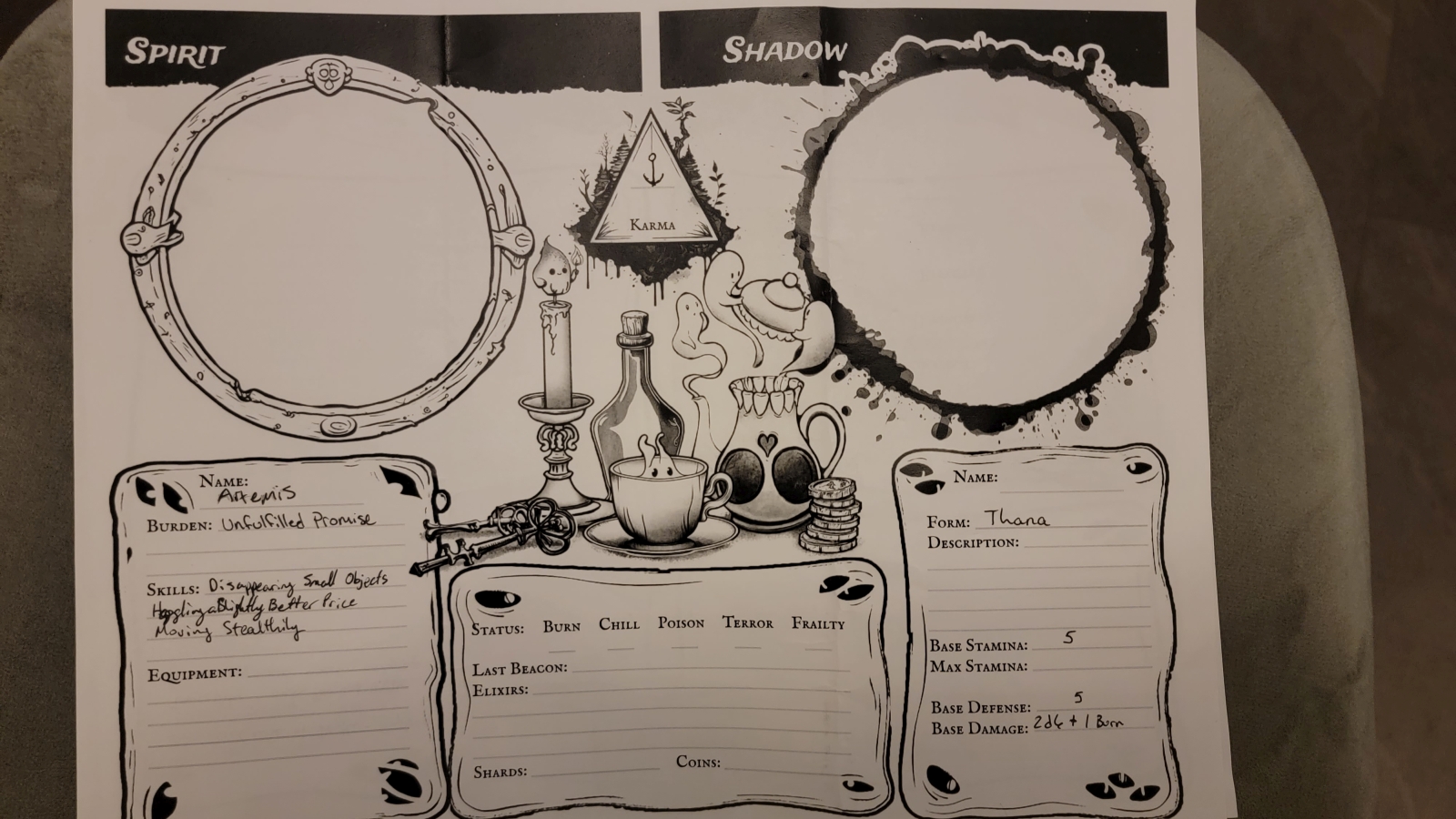 Sitting down to do a one-shot at Origins Game Fair 2023, it was clear that anyone looking for a unique, fun experience from an RPG should look no further than Ink. A smaller, yet very accessible book, filled with fantastically beautiful art, Ink’s drastically different mechanism that players are treated to is the leveling system. Players when a whole team dies, then proceeds to level up. With this mechanism death goes from something that seems more daunting and final, to something that can be utilized as a tool to progress further in the game.