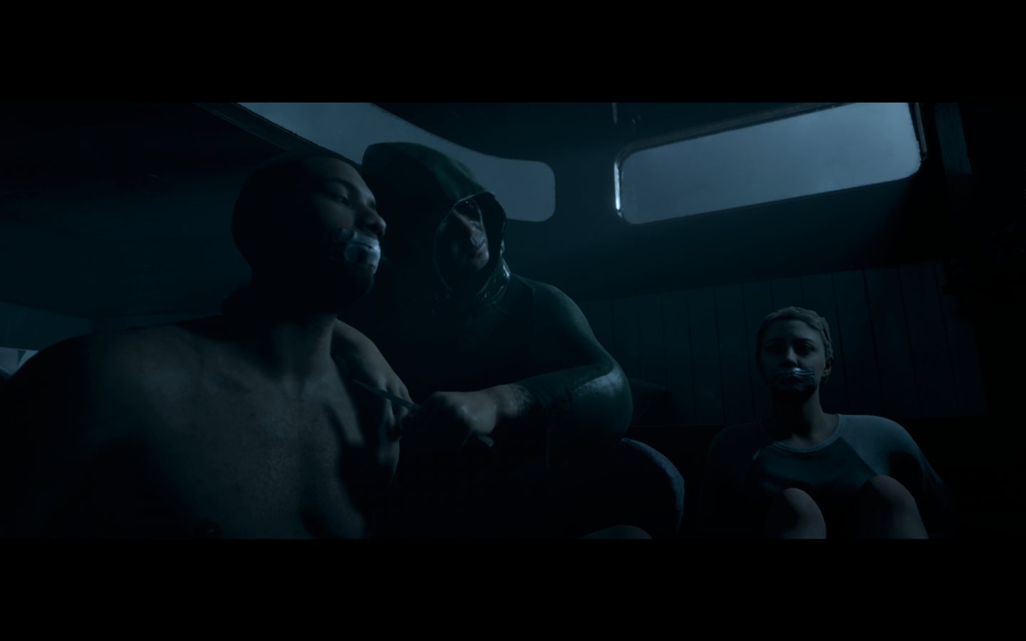 When the demo begins, four of the characters have been tied up by the fishermen. Every so often, you have the chance to finish a prompt. One of the first ones was to untie either of the friends or do nothing. Each of these prompts had immediate consequences, and if I chose to get too cheeky, the character I controlled could have gotten hurt by the fisherman.