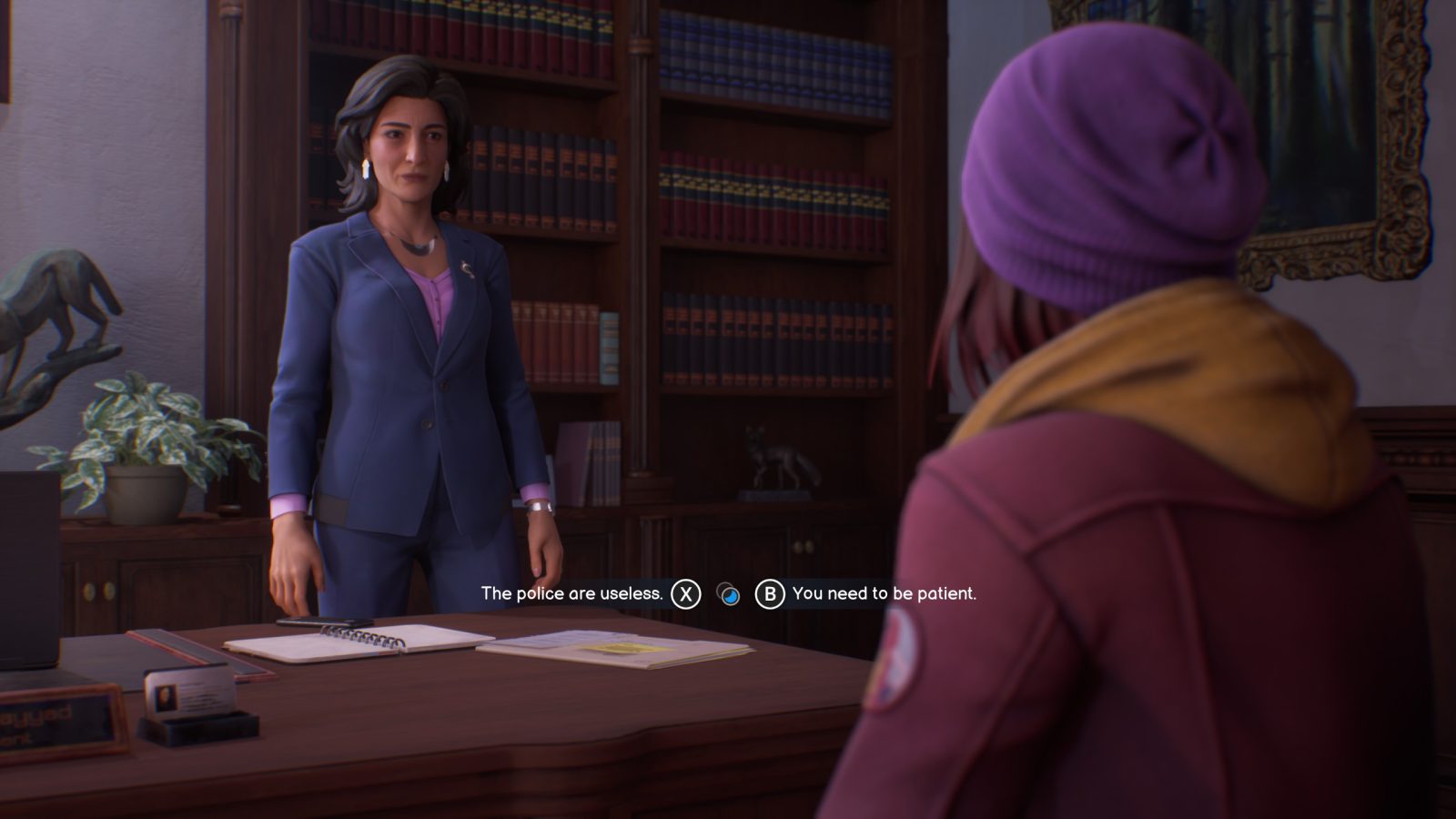 Unfortunately, this inciting incident does bring up an aspect of Max’s return that I am lukewarm on. The framing of why Max is again utilizing supernatural powers feels a bit contrived. Some of it has to do with the distinction between her powers from the entry to Double Exposure, rewinding time versus Shifting between timelines respectively. While I can see the general thought process behind the justification, it feels too heavily reliant on clinging to semantics for my liking. That being said, I was willing to let it slide as the portrayal of Max’s guilt overall had me impressed at how Deck Nine has integrated Max as a lead in Life Is Strange again, which was sufficient enough for me to look past weak justification of her powers, though mileage will vary. It plays into the themes of Max clinging to the past while trying to live for the future, by entrenching her back into a status quo with Safi alive rather than actually coming to terms with her death.