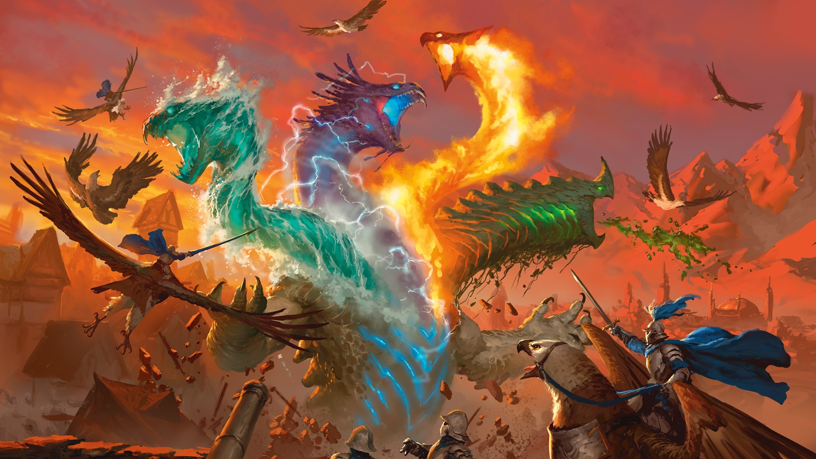 The 2014 Monster Manual has a few creatures that represent the apex of their creature type, such as ancient dragons for dragons and the terrasque for monstrosities. For 2024, they’ve expanded that list to include new monsters that represent the apex of other creature types. The elemental cataclysm is the new apex creature for elementals. Shown in the artwork as a gigantic dragon-like monster with four heads composed of the four elements, this high challenge rating monster causes different environmental disasters to occur while the PCs are fighting it.