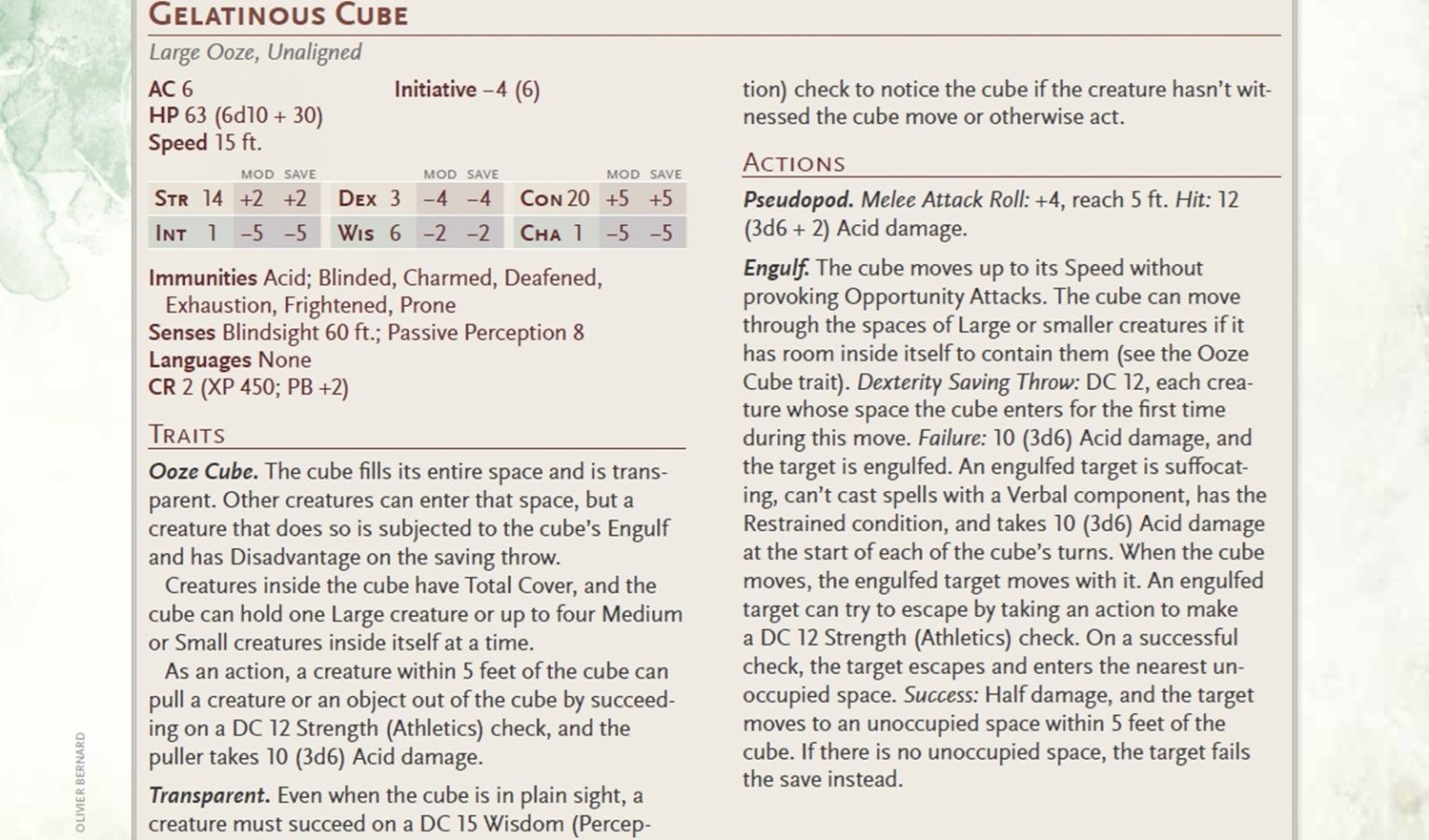 The top part of the gelatinous cube’s stat block.