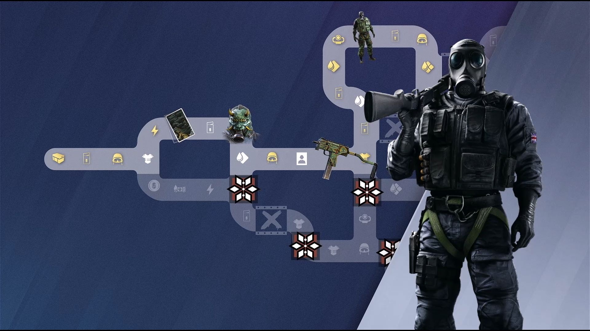 The Battle Pass is also getting an upgrade, and it kind of goes along the same model as what the new Battle Pass for Modern Warfare II looks like. Instead of a linear progression with Battle Pass levels you are presented with a roadmap with nodes that you unlock with Tokens and Breach Charges (clever). This means you’ll be able to prioritize the rewards you want to receive. You’ll earn tokens and charges by playing matches and then use them 1:1 to unlock tiles and get through Breach Paths which create shortcuts for quicker access to the rewards you want. You’ll unlock different cosmetic rewards, Alpha Packs, Bravo Packs, Renown boosters, Battle Point boosters, and R6 credits with an additional reward being given for each tile unlocked for Premium Pass holders. I still don’t know how I necessarily feel about this progression type, but we’ll see how I feel once we get to see what the new Battle Pass has packed inside.