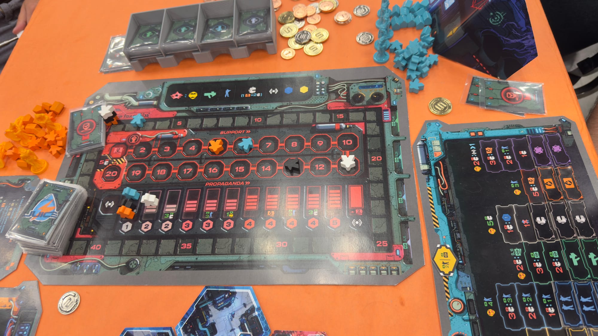 During setup, everyone's going to draft their board positions and choose their asymmetric abilities, which look to be the gentle nudge of being a smidge better at x or y part of the game rather than the dramatic “have a great economy but get your teeth kicked in” of other offerings. Once you start digging into the meat of the game, the decisions you made during setup come back to help or hurt, as controlled hexes give an array of economy boosts from bonuses tied to use of a specific token on the rondel to an extra dollop of dudes.