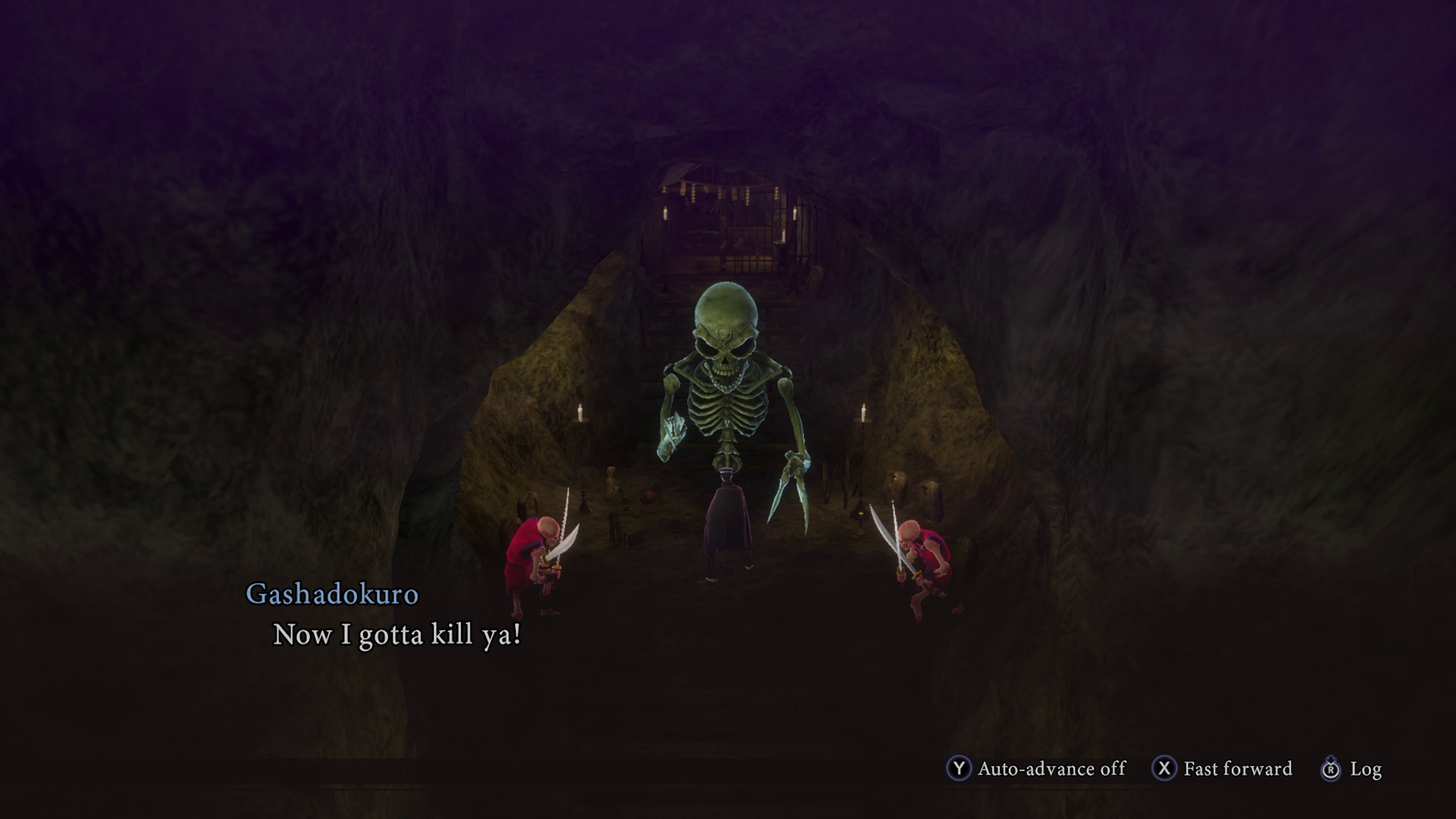 Shortly after beating the chimera creature, you find a small jail cell. Within you can investigate a dusty bookshelf and, using the power of one of your demons, discover the client's diary, which will presumably help us find her whereabouts. The demo ended right after that with a boss fight against a Skeleton demon with an ill-fitting voice, though that voice acting has mid-2000s cheese I can appreciate.