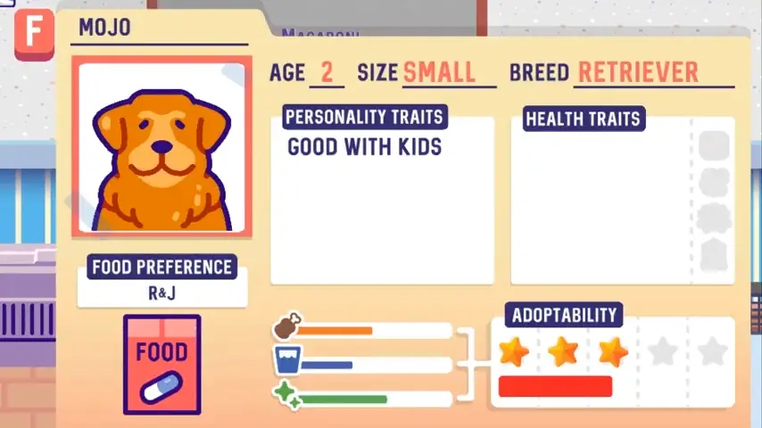 The game has a cute, fun art style with over 30 different breeds of dogs represented in the final build. Each dog has randomly generated traits that can either make them more or less likely to be adopted depending on who comes through the door looking for new pets. To the Rescue! allows players to expand operations through construction of new kennels, play areas, and break rooms for employees. The main draw of the game comes in building relationships with the dogs as you feed them, groom them, and make them suitable for adoption. A sad but realistic aspect of the game is euthanasia. When the shelter becomes too crowded or a dog becomes too unhealthy, hard decisions have to be made. Originally, the game was locked into euthanasia being a universal mechanic, but now players have the option of toggling it off. Instead, euthanasia is replaced by sending dogs away to different shelters. Check out some of the gameplay here:
