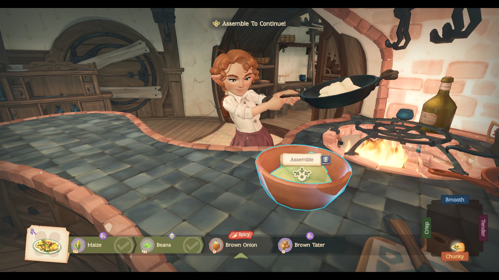 You’ll make friends and build better relationships with the other hobbits by completing objectives for them and also inviting them over to share a meal. Each hobbit has a particular craving that you’ll have to try to satisfy with your cooking, making sure to hit that sweet spot in tenderness, between chunky or smooth, spicy or bitter or sweet, which is all achieved by carefully preparing every ingredient. You won’t just add stuff to the pot or the plate, you’ll have to chop, fry, and season everything to perfection before combining it into the final dish and serving it to your guest. If you manage to hit that sweet spot, you’re rewarded with a relationship level increase and maybe even a gift.