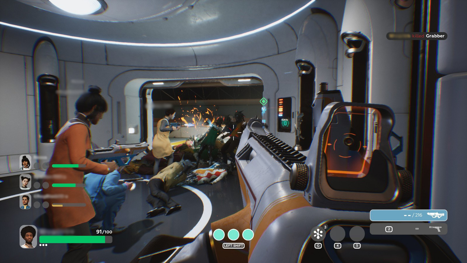 Unfortunately, The Anacrusis plays all its cards within the first few hours. The magic from that initial session dissipates rather quickly, replaced with mundane levels and lackluster progression. At the heart of each episode is the dynamic difficulty engine puppeteering the alien hordes. Brief periods of calm are interrupted by waves of aliens led by handfuls of special enemy types. Between your Grabbers, Goopers, Flashers, and a few others, The Anacrusis has all the special enemy essentials. Different combinations of threats pose slightly different challenges, but it becomes impossibly hard to differentiate one level from the next. After you’ve run its gauntlet once, you’ve experienced it all. It’s also immediately apparent that the AI isn’t a big fan of graduality. It’s common to come out of a rough encounter only to stare down another alien assault because a new player joined the lobby. A human player with two health points definitely doesn’t warrant an army of fresh enemies right off the bat.