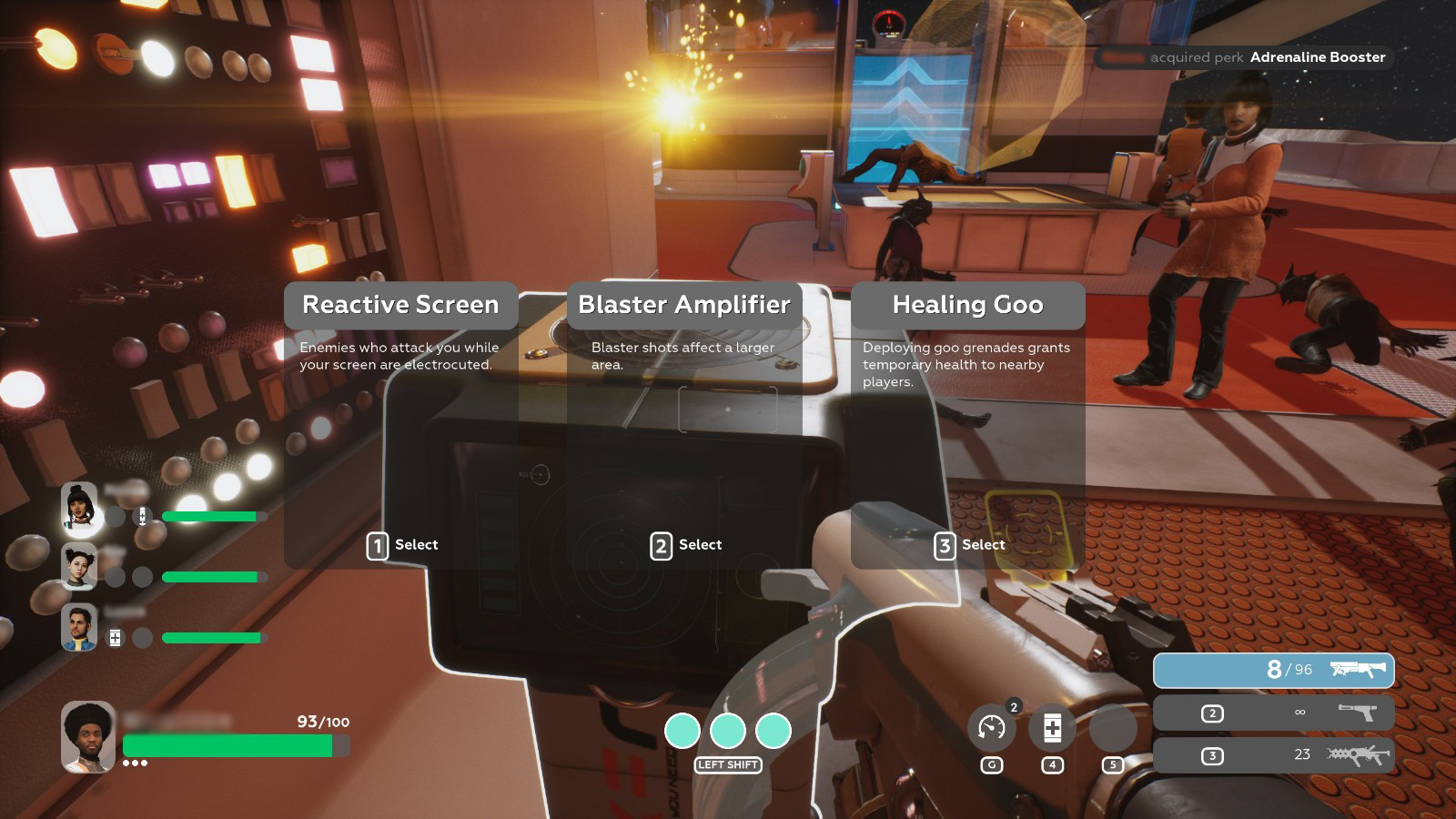 Instead of encouraging debates over who gets the blue rifle and who gets the black, The Anacrusis keeps the pool of options small but meaningful. Ammo and health kits are the lifeblood of the team and their scarcity guarantee more than a few friendly squabbles to determine who gets what. Matter compilers hidden throughout levels offer choices between three randomized perks that persist throughout the episode — a bit of rogue-like flavor that encourages teams to workshop new strategies. Snagging a perk that speeds up healing might put you in charge of the health kits, for example. This is what The Anacrusis does best: using its systems to generate a never-ending supply of tricky choices for players to solve as a team.