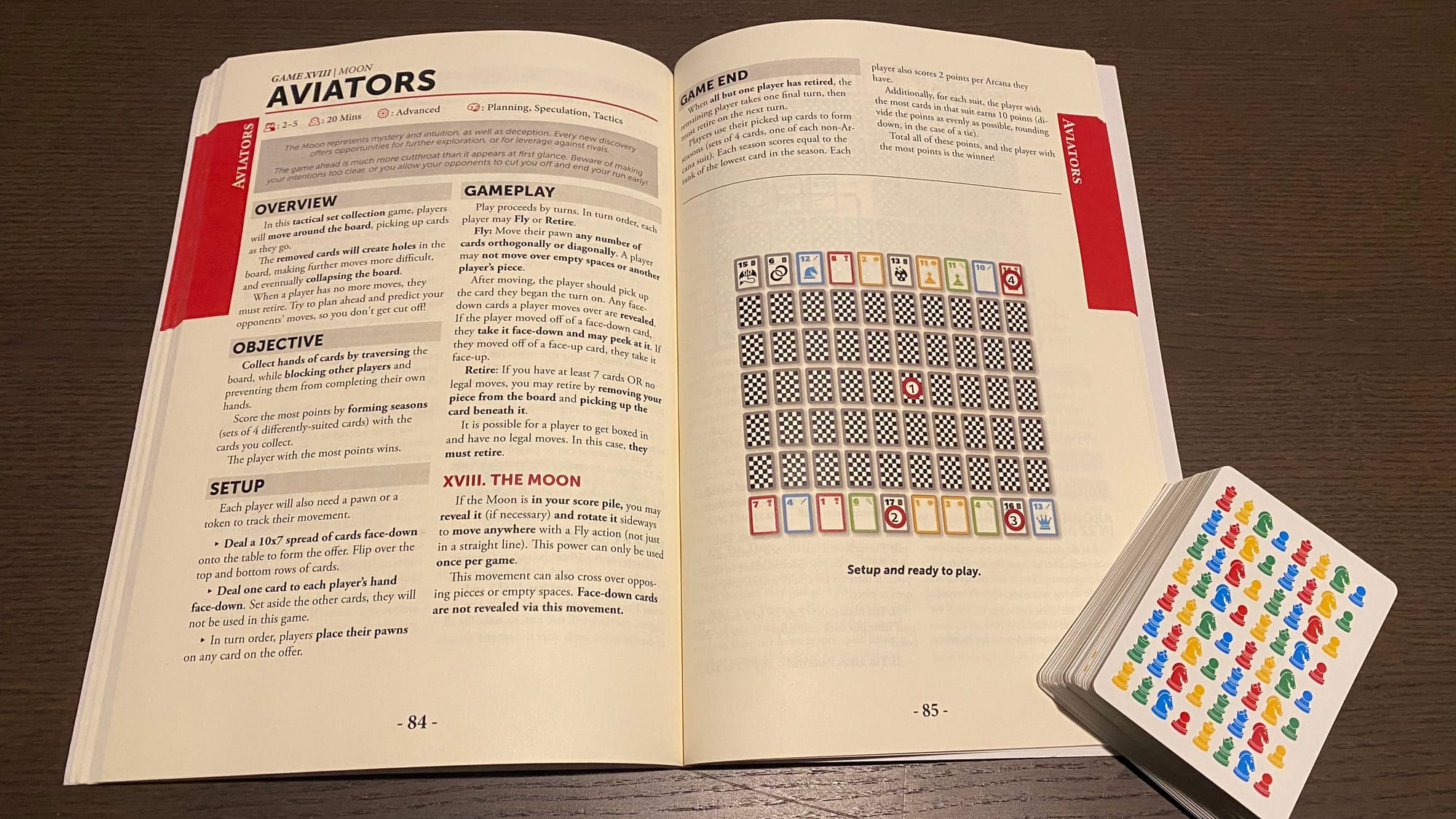 One of my favorite inclusions in this book isn’t a single game, but the acknowledgments following the rules of each one. I always love learning about what inspires people to create their games and seeing how designers iterate on another’s ideas, so I very much enjoyed seeing the callouts to other games I’ve played before.