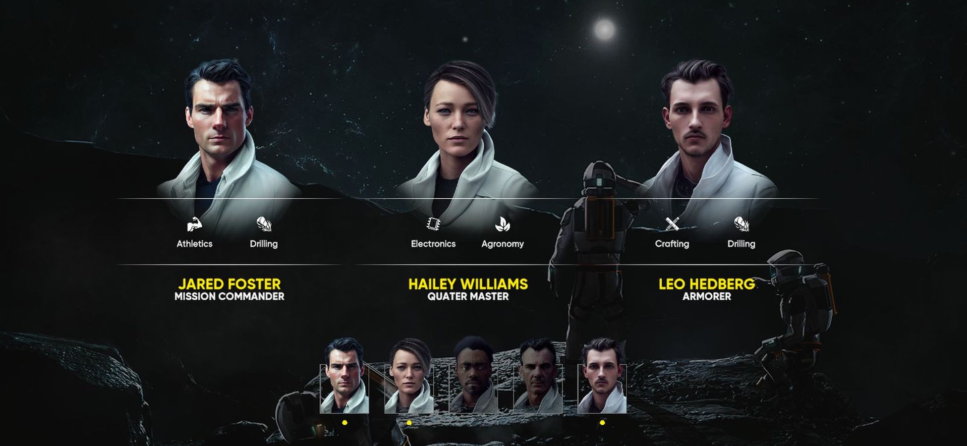 I did have to give a laugh to my survivor collection. Each of the five selectable potential crew members slightly resemble a few real-life actors and actresses. You can take Discount Blake Lively, Discount Henry Cavil, and Discount Idris Elba, or you can bring Discount Skeet Ulrich and Discount Old Benedict Cumberbatch. No matter which “We have those actors at home” version you take, they each have their own strengths and weaknesses you’ll want to consider beyond your personal desire to bring Superman on your deployment.
