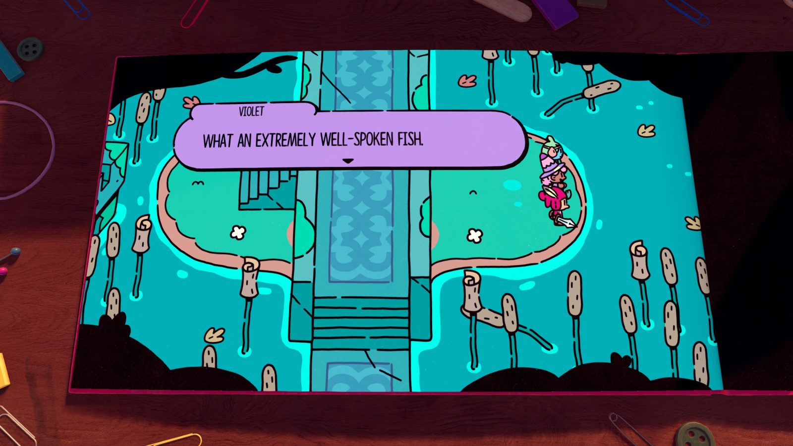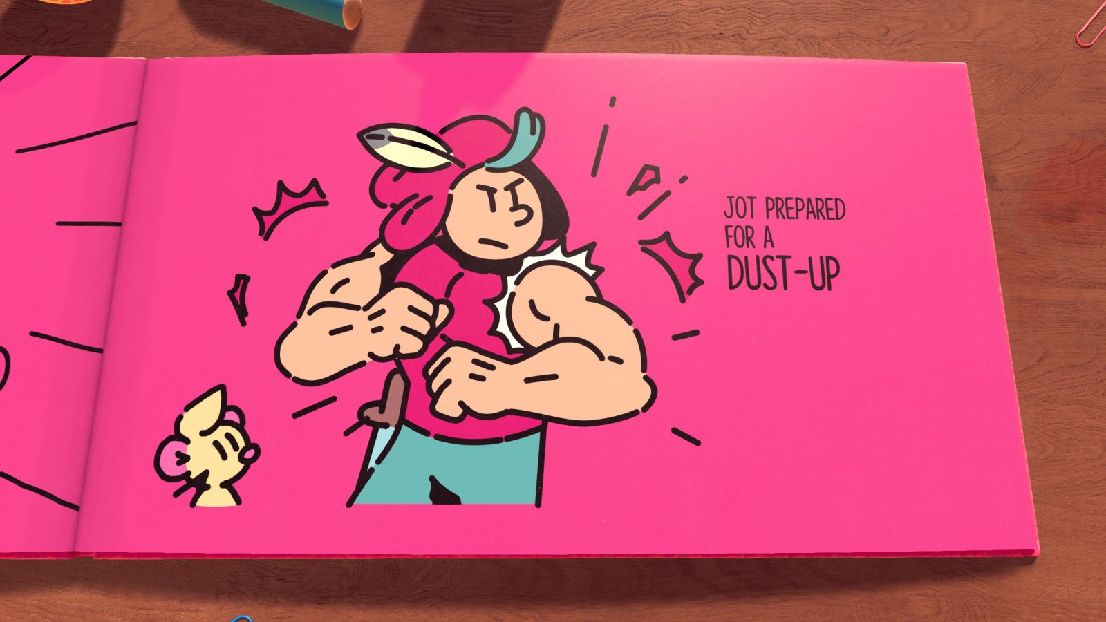 To match its adorable premise, The Plucky Squire has an equally adorable art style, looking just like a childrens’ story book, with a charming wobble to characters seen in cartoons like Ed, Edd, n Eddy. When Jot is forced out of the book, the real world possesses an uncanny yet charming quality, with some realistically rendered art supplies and bugs that serve as platforms and hazards to make your way around. Whether inside or outside the book, it’s absolutely gorgeous.