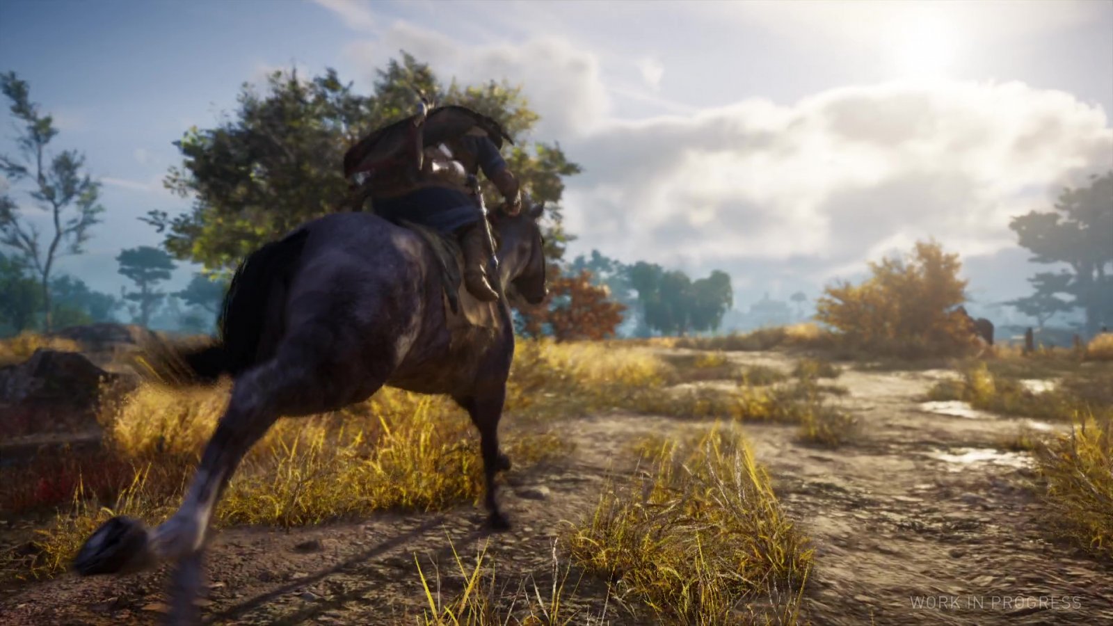 There have been a number of quality of life and mechanical changes since Odyssey, like the aforementioned healing mechanics. Instead of using adrenaline to heal, you’ll now have to either eat food and plants to recover or store them for later use much like Horizon Zero Dawn. Equipment has also changed drastically, with each item being aspected to one of three skill trees. You can no longer equip two sets of weapons to swap between, and instead choose a weapon for each hand. The right hand weapon is used for light and heavy attacks while the left hand weapon is for parrying with the left bumper or other attacks by double tapping the button. I didn’t find much use for weapon swapping in the previous games outside of mixing it up a bit, so I welcome the change as it adds just a bit more customization. You can even dual wield shields, apparently, if you’re feeling defensive. Side quests have instead become what’s called World Events. They’re still marked on your map when nearby with a gold or blue icon, but they’re no longer tracked in your quest log so you’ve got to figure out what to do on your own. I also see this as a change for the better, as it contributes to the feeling of adventure and keeps you wondering what’s in each and every corner of the map. All these changes make for a more challenging and rewarding experience, while still feeling fair and, most importantly, fun.