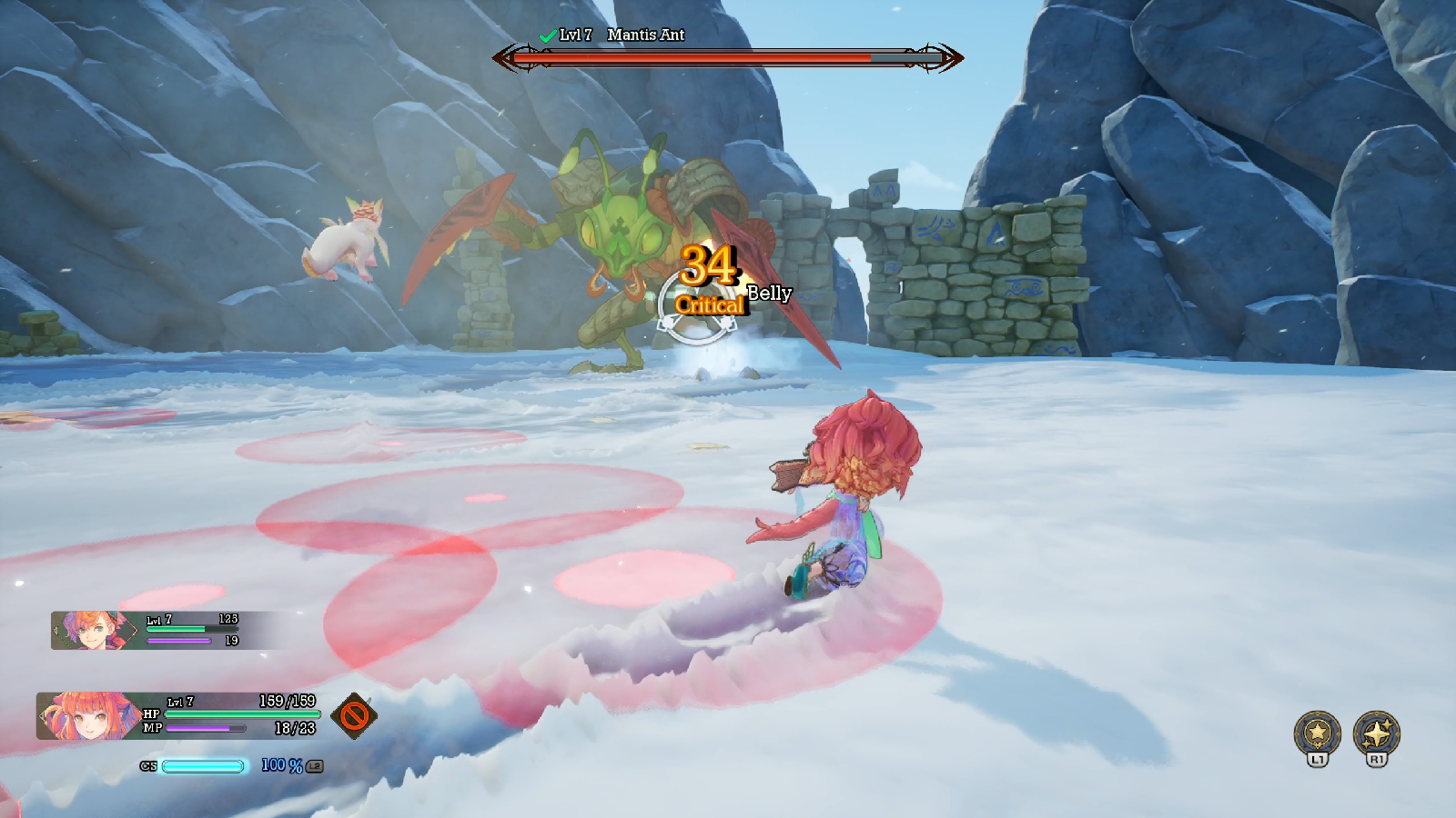 I’ll concede one thing: battles are pretty and flashy. In the only boss fight I encountered with a familiar mantis-like creature, I actually had to use a decent number of dodges, the vessels, and the flashy specials you can execute after charging a meter. It was much more engaging than previous encounters. I hope the rest of the game plays out like that with tons of spells being thrown around the battlefield as I scramble to find pots to recover some of my special meter. This isn’t to say standard encounters are boring, but they end so quickly I can’t help but feel relieved that I got some challenge from one of the first major bosses in the game. It feels like Visions of Mana is meant more so to be about the exploration of its large areas as opposed to being an intricate RPG like maybe Baldur’s Gate. It feels a bit at odds with itself given how much fire power (no pun intended but the only spell I got was Fireball) they give you at the start.