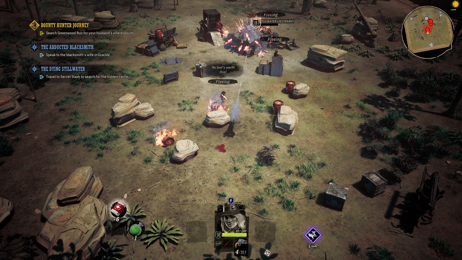 That didn’t stop at the reputation system either. Resources are scarce out on the frontier, especially ammo and consumables. Gunfights never last too long, but they’re risky and costly. Using the environment against enemies or even taking a stealthier approach could be the key to coming out unscathed, though rarely does any plan go off without a hitch. Weird West let me find my own way forward and deal with those consequences as they come. A combination of environmental hazards, scattered consumables, and my personal combat capabilities informed every approach.