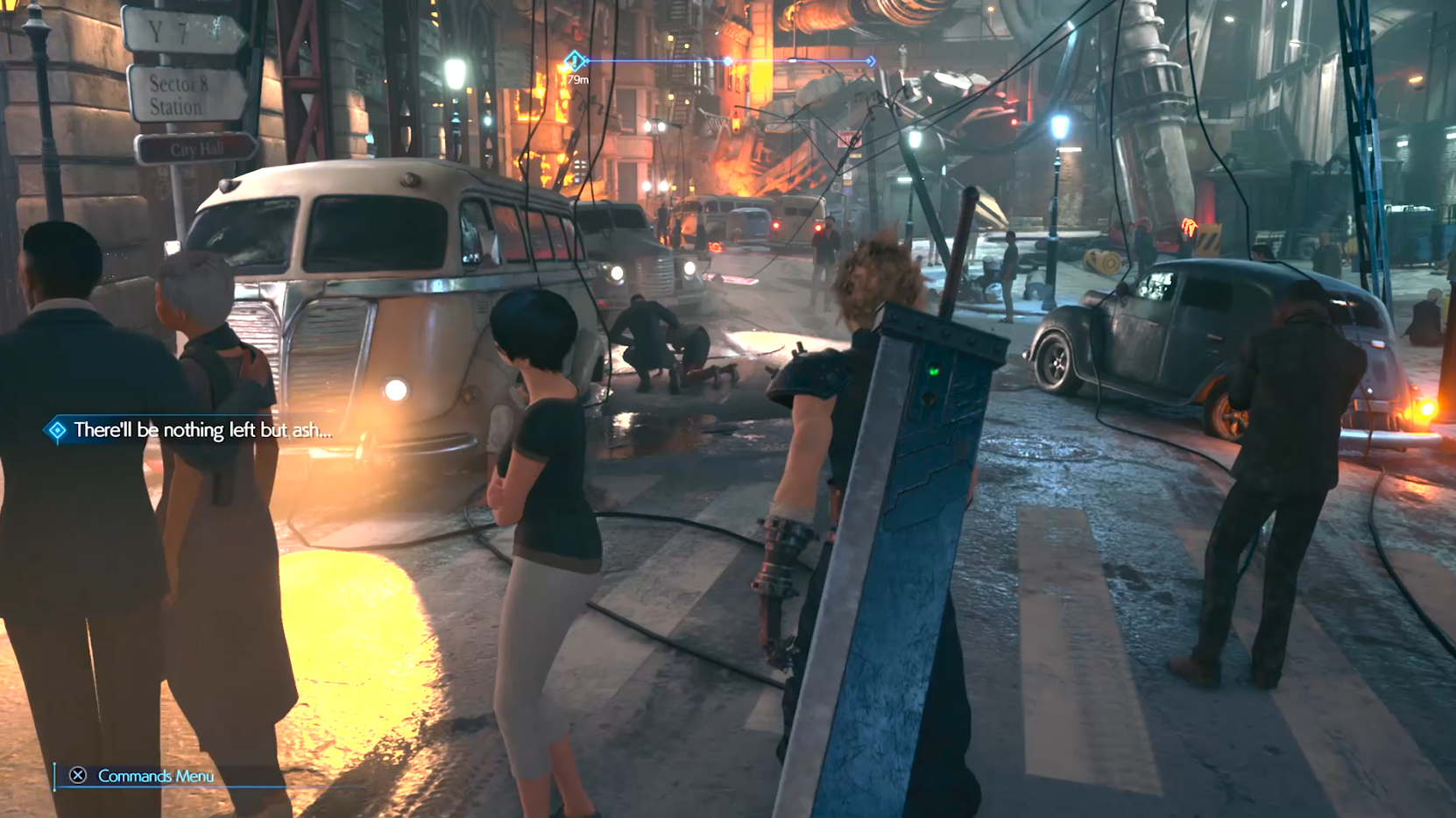I won’t spend too much time detailing the first mission, as you can check out the playthrough in the video above. The remake is both faithful and refreshing; the core details are the same, but it also brings in new content, gives combat a modern overhaul, and tweaks the plot just a little, giving the player a better perspective on the true nature of Shinra earlier on. The story changes are more than just cosmetic, and really start to hit home in Chapter 2, which is made of almost entirely new content. Cloud and AVALANCHE find themselves in the severely damaged slums of Sector 8, where shocked and angry people have gathered to witness the destruction of Mako Reactor 1. Both Cloud and you, as the player, are forced to really face what it means to be an eco-terrorist; you did this to these people. You destroyed their homes, shattered their meager little lives. You planted the bomb which took away their loved ones, and now you must walk among them, witness their pain and listen to their anguish, as you work your way towards the rendezvous point, where Barrett will pay you for the destruction you helped cause.