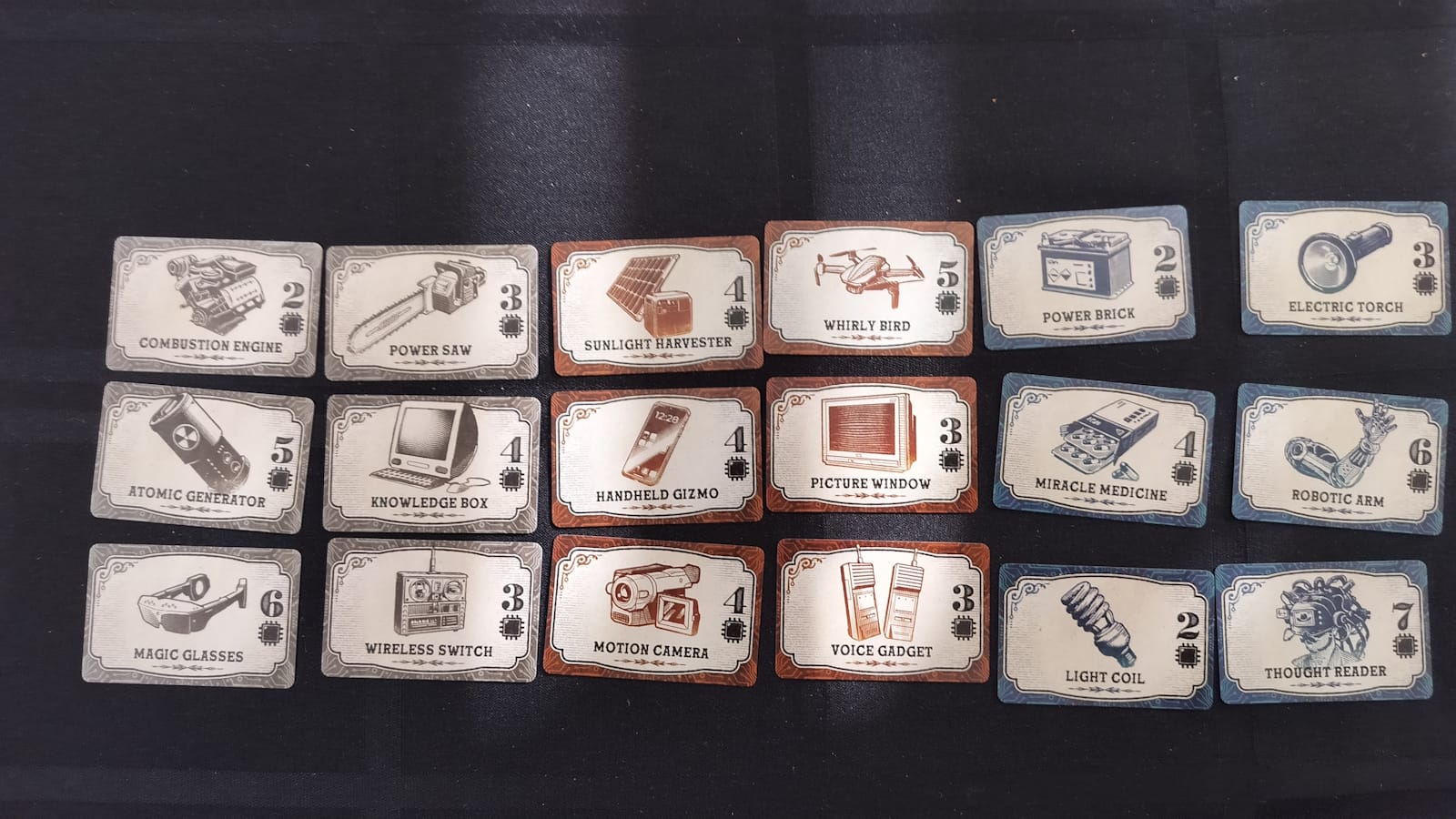 The other half of the bluffing mechanics in 3000 Scoundrels comes from the best way to get points: Safes. Each day, players can steal (and keep) up to 1 safe. These safes are kept face down on the board until either scouted or stolen, and each are worth wildly varying results. When scouting a safe, players are required to place one of their numbered poker chips on it. They can either lie about the safe, maybe drawing opponents away or getting them to steal a dud piece of tech, or they can tell the truth, which adds 1 additional point to the final score of that tech. This risk and reward means that players can tell the truth to be greedy and boost their score, but have to contend with the possibility of other players taking the safe out from under them.