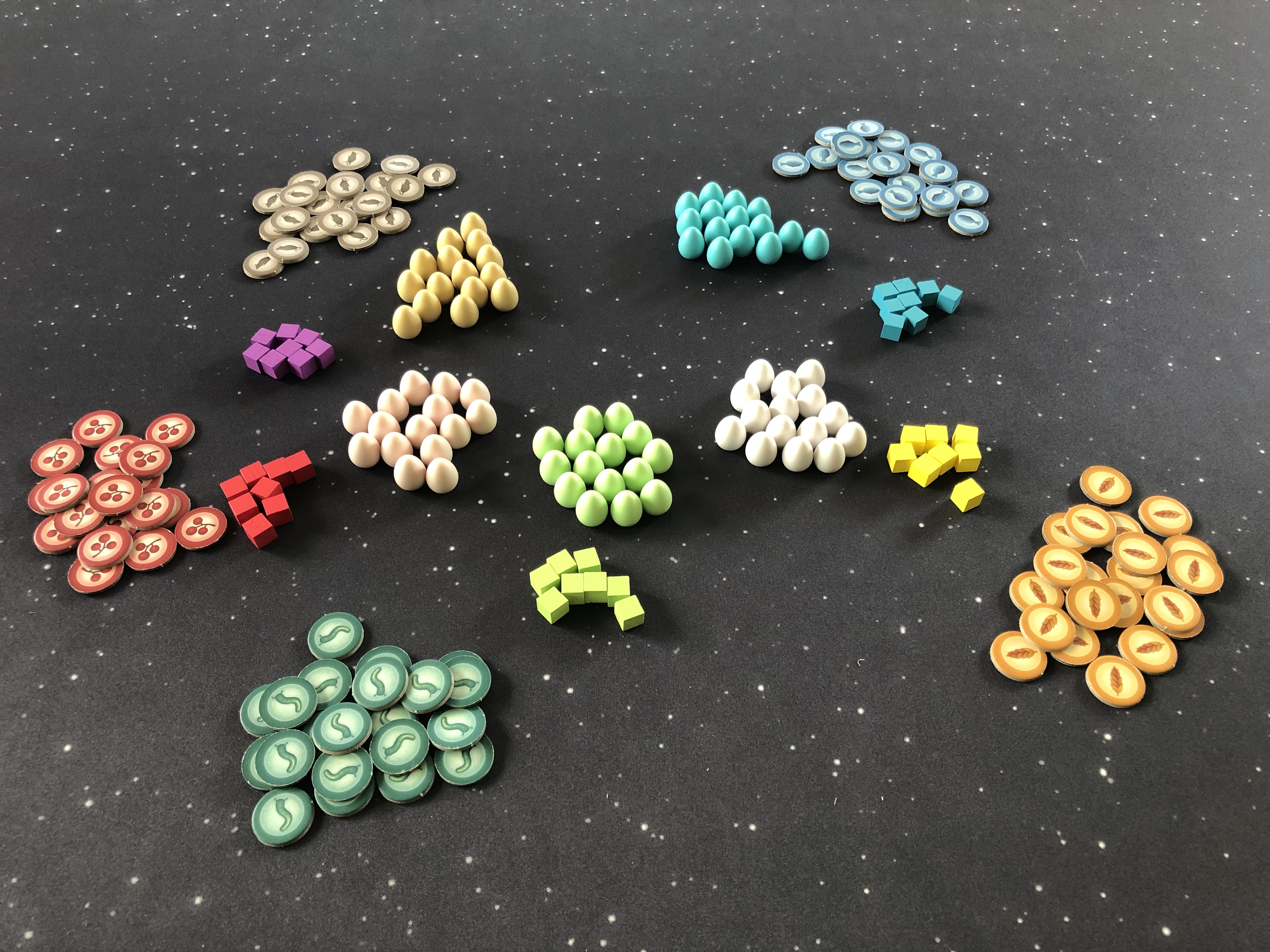 The simple, streamlined gameplay offered by placing cubes on the mat in a habitat and moving them to the left across the birds in that habitat opens the door to a complex set of interactions that will quickly have you making tough decisions on how best to spend your actions. All the actions rely on the other actions to enable them, so no matter what you choose, there will always be another action you will wish you could have done beforehand to make this current action better. Playing a bird is a simple matter of choosing a bird from your hand and playing it – if you can meet the food requirements stated on the card. To gain the food you need to play birds you need to choose the gain food action, but you only gain one food if there are no birds in your forest habitat, so to make that better, you need to play birds there.