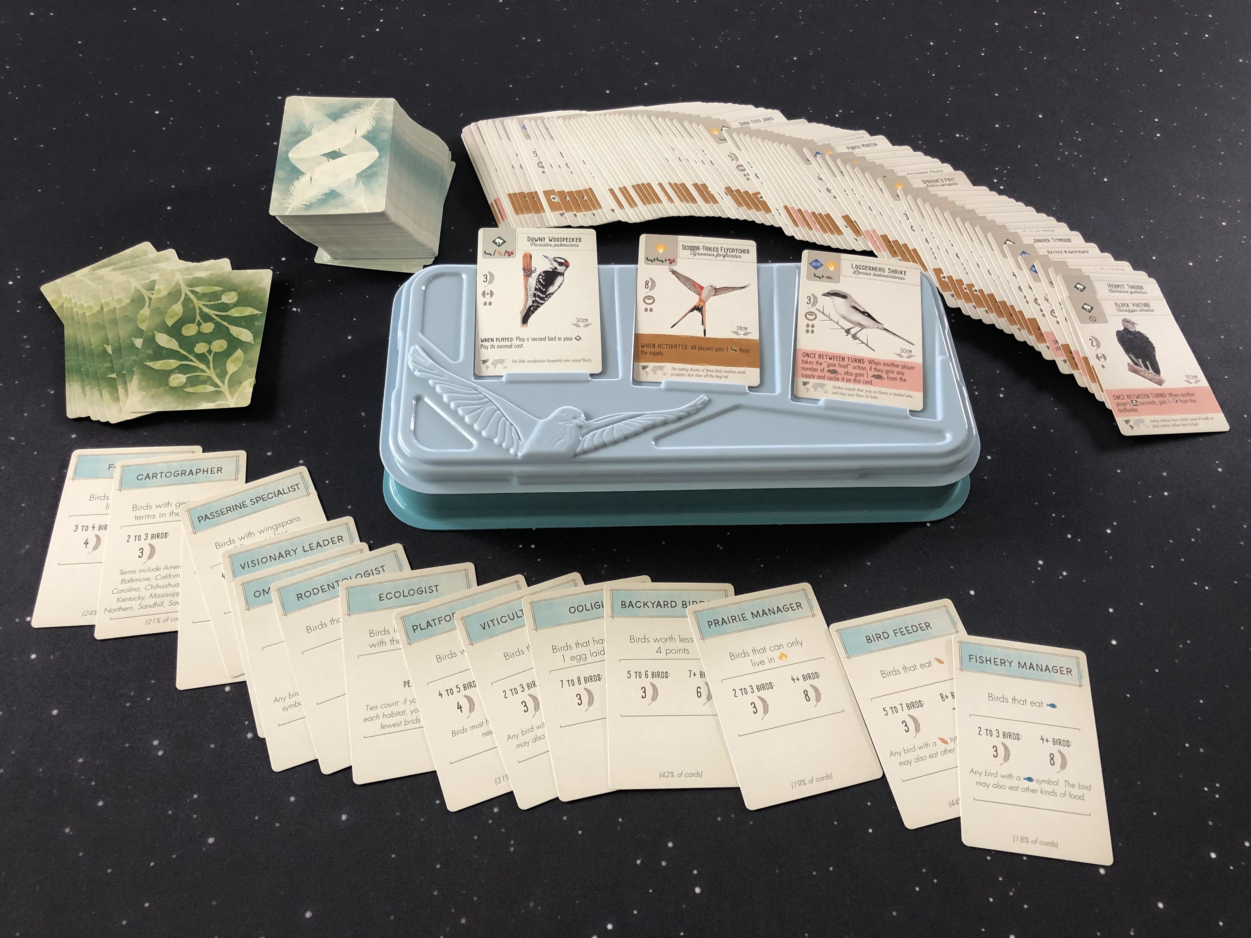 Flocks of birds wheel and turn through the air while a group of enthusiasts try to coax them into their aviaries. You are a bird enthusiast and this is the chance for you to outdo your competitors and develop the greatest collection of North American birds. From ducks paddling in the marshy waters to owls silently winging through the treetops and flocks of birds in between, your ability to assembly a menagerie of complimentary birds will determine if you are the better birder than your fellows. The avian theme runs strong throughout all aspects of Wingspan, designed by Elizabeth Hargrave and published by Stonemaier games. Each round of Wingspan you will attempt to fill your aviary with birds that, in turn, provide you benefits and ultimately help you to score points with which you win the game. If you like birds, then you are in for a treat, if you never thought much about them, this may open your eyes to the beautiful avian world just outside your window, and if you don’t like birds, well, this might change your mind.